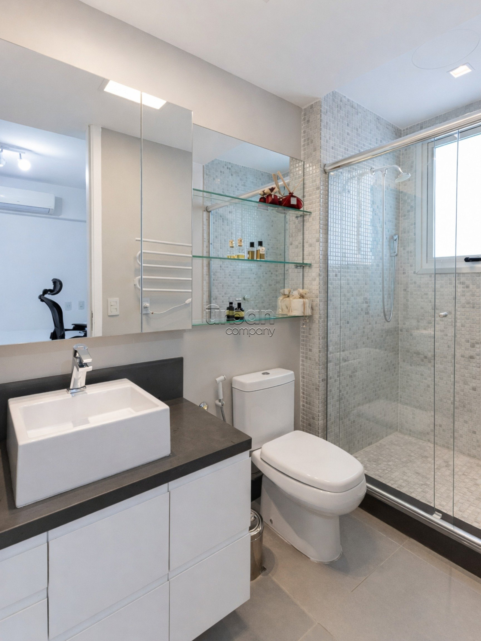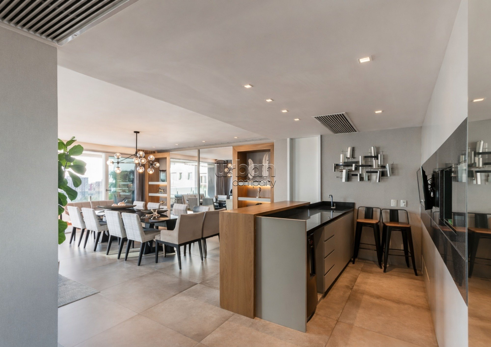 A área social conecta-se de forma orgânica à copa e cozinha planejadas com churrasqueira, criando um espaço acolhedor para receber. O imóvel conta ainda com hall privativo com elevador codificado, dependência completa e banheiro auxiliar, além de um diferencial raro: deck exclusivo com piscina, que proporciona momentos de lazer com privacidade.