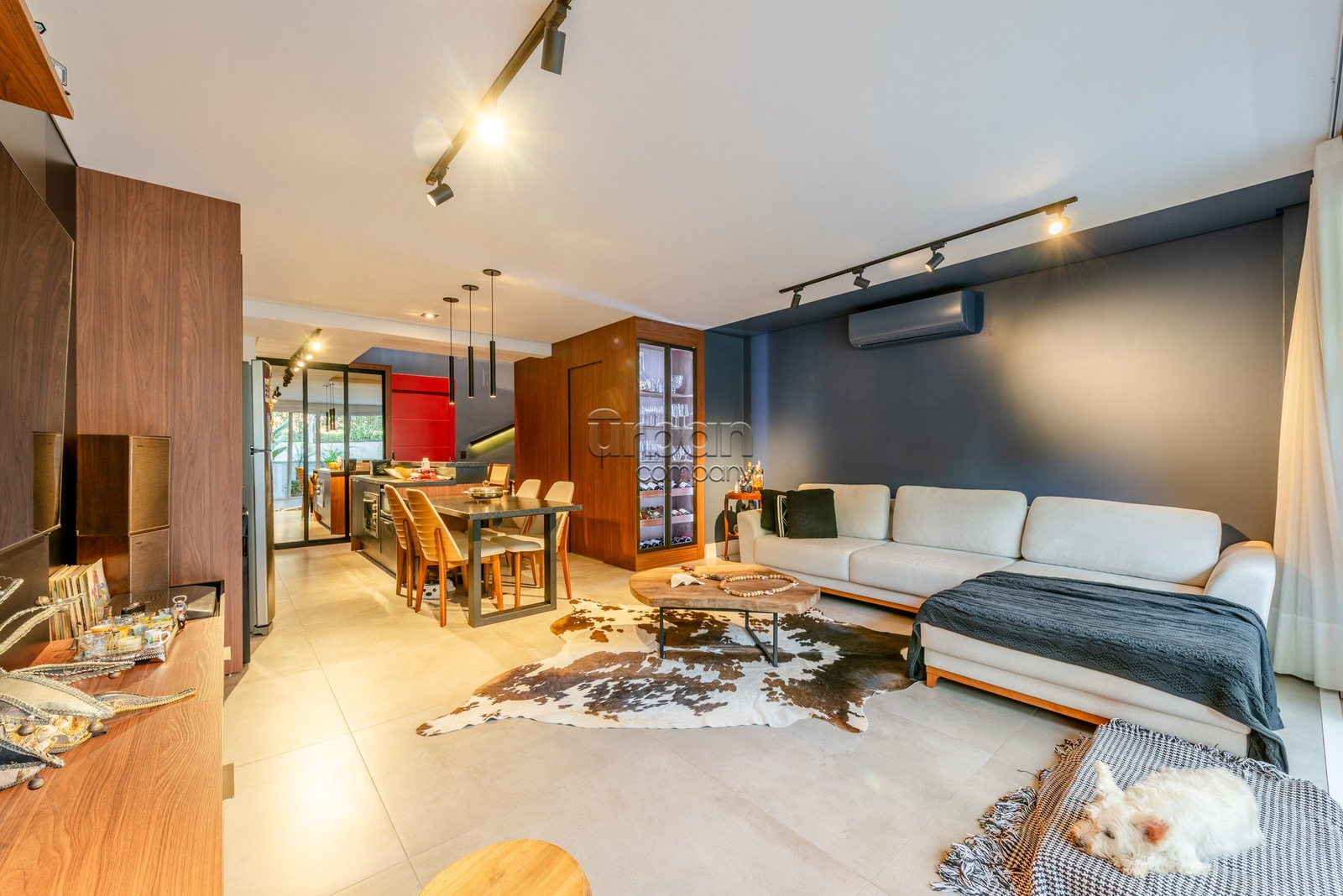 O imóvel conta com uma planta inteligente, que une conforto, funcionalidade e elegância. No pavimento inferior: living para 2 ambientes, com adega e amplo janelão em vidro integrado à sacada. Lavabo, cozinha americana com churrasqueira, área de serviço separada. Pavimento superior: 2 dormitórios, sendo 1 suíte master e banheiro social.