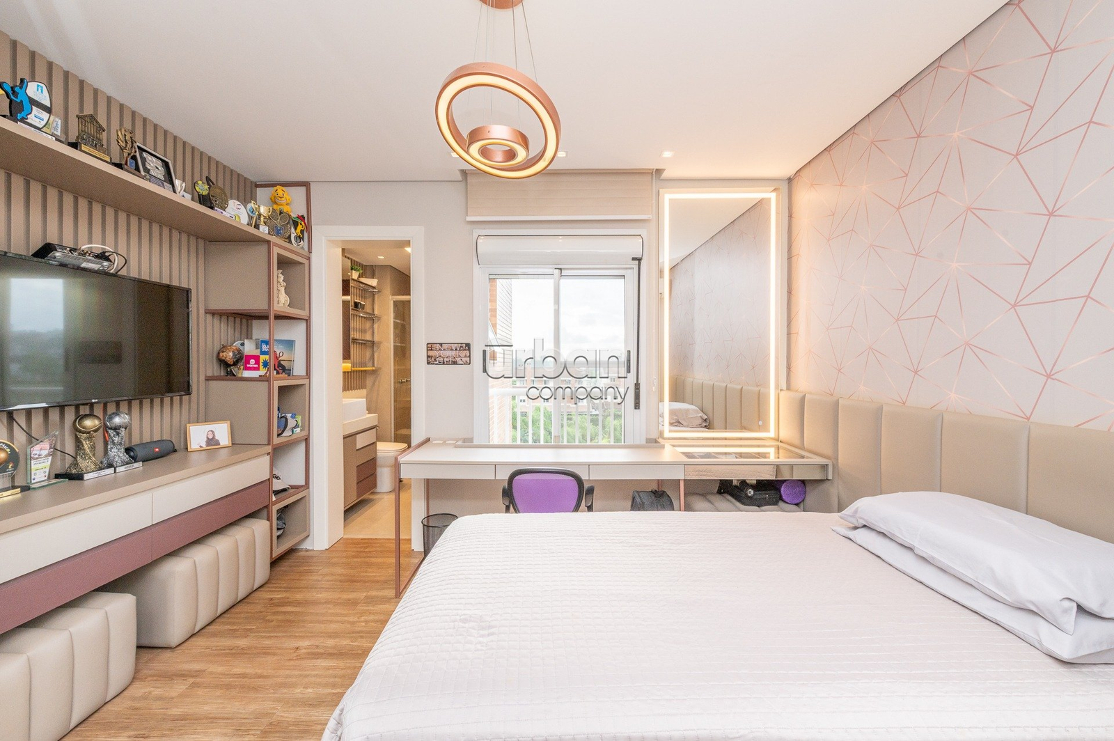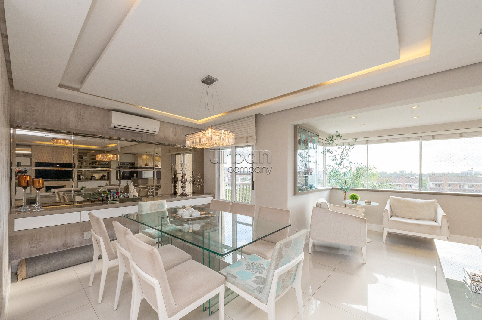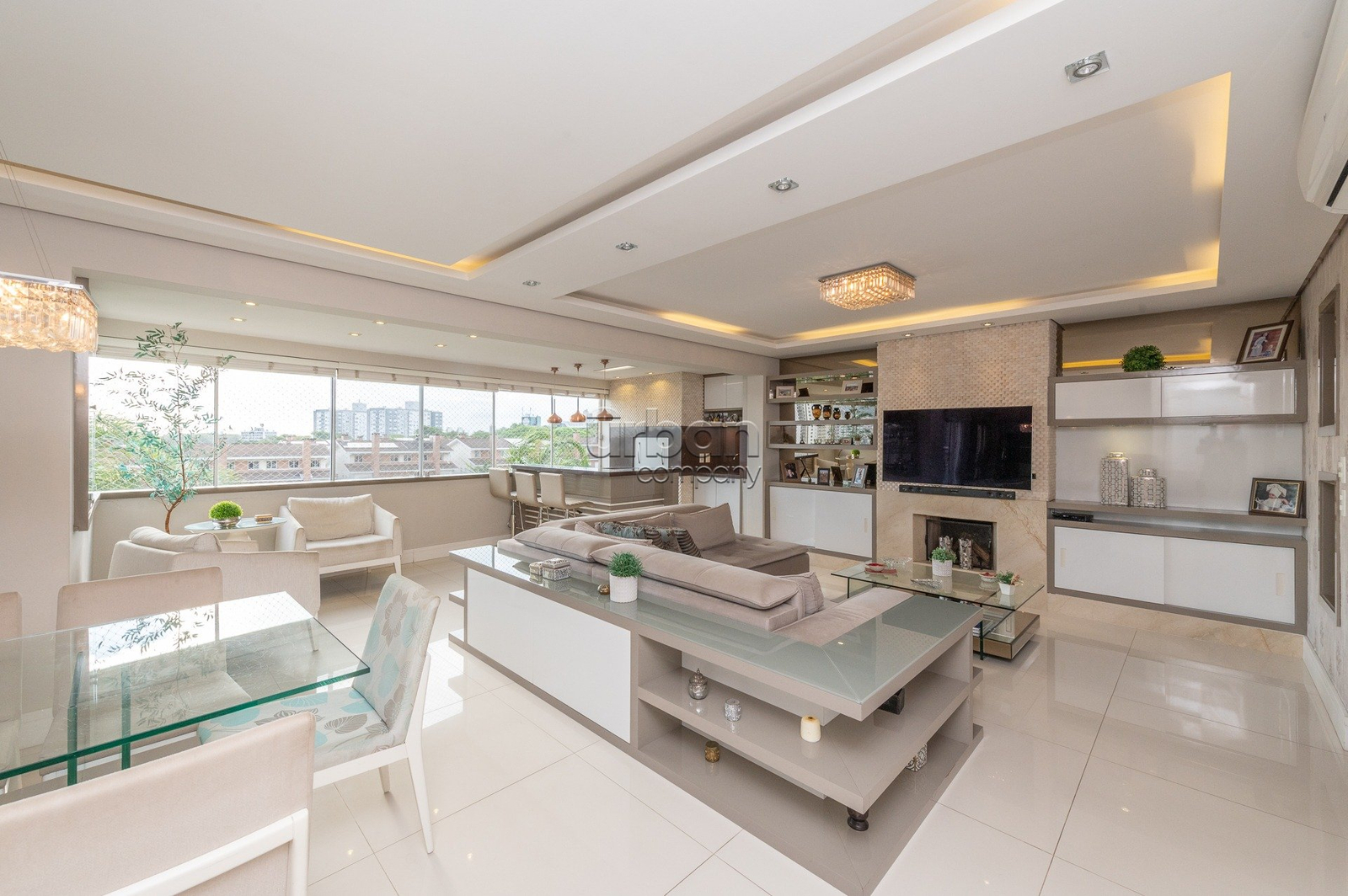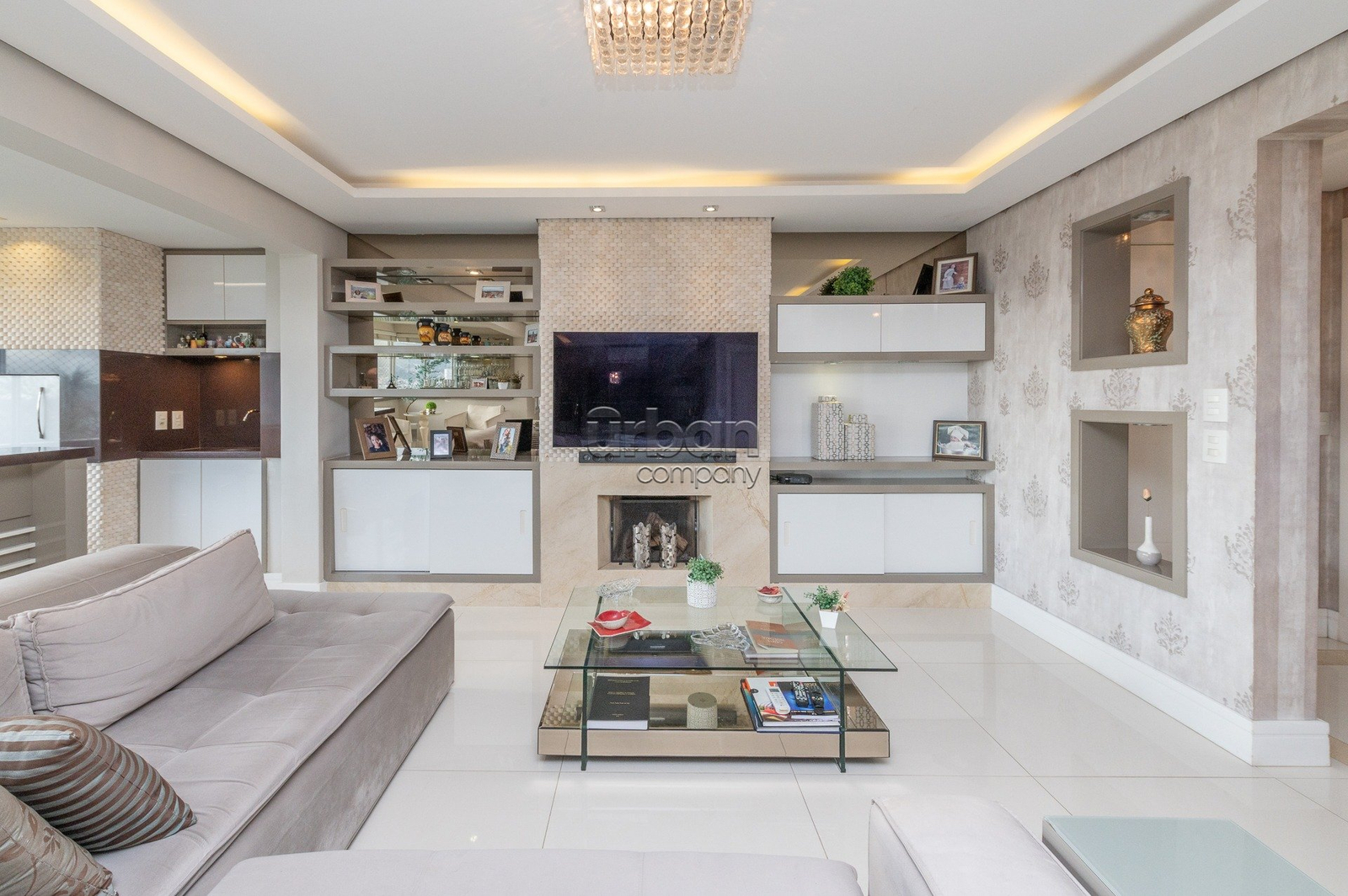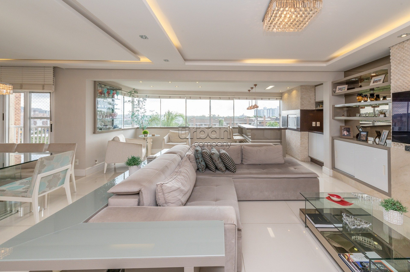 Imovel fica 100% mobiliado. Hall de entrada diferenciado com papel de parede, piso em marmore, bancada e,acabamento em marmore, painel de armarios em laca, vidro espelhos, sofa feito sob medida com armarios de apoio, espaço gourmet com churrasqueira revestida em marmore, bancada de silestone pia de apoio com armarios em laca, espaço jantar com mesa e banacada buffet com a mesma marcenaria, lustres e iluminaçao indireta, persianas automatizadas, lavabo decorado discreto na entrada do living. 3 suites plenas banheiros com ventilaçao direta, sendo a master com closet, muito bem mobiliado e decorados todos os dormitorios, armario de rouparia no acesso aos dormitorios. Passagem da area intima ao serviço. Copa Cozinha com mobilia fixa sob medida e eletrodomesticos embutidos, dependencia completa com mobilia sob medida e split. Area de serviço separada.