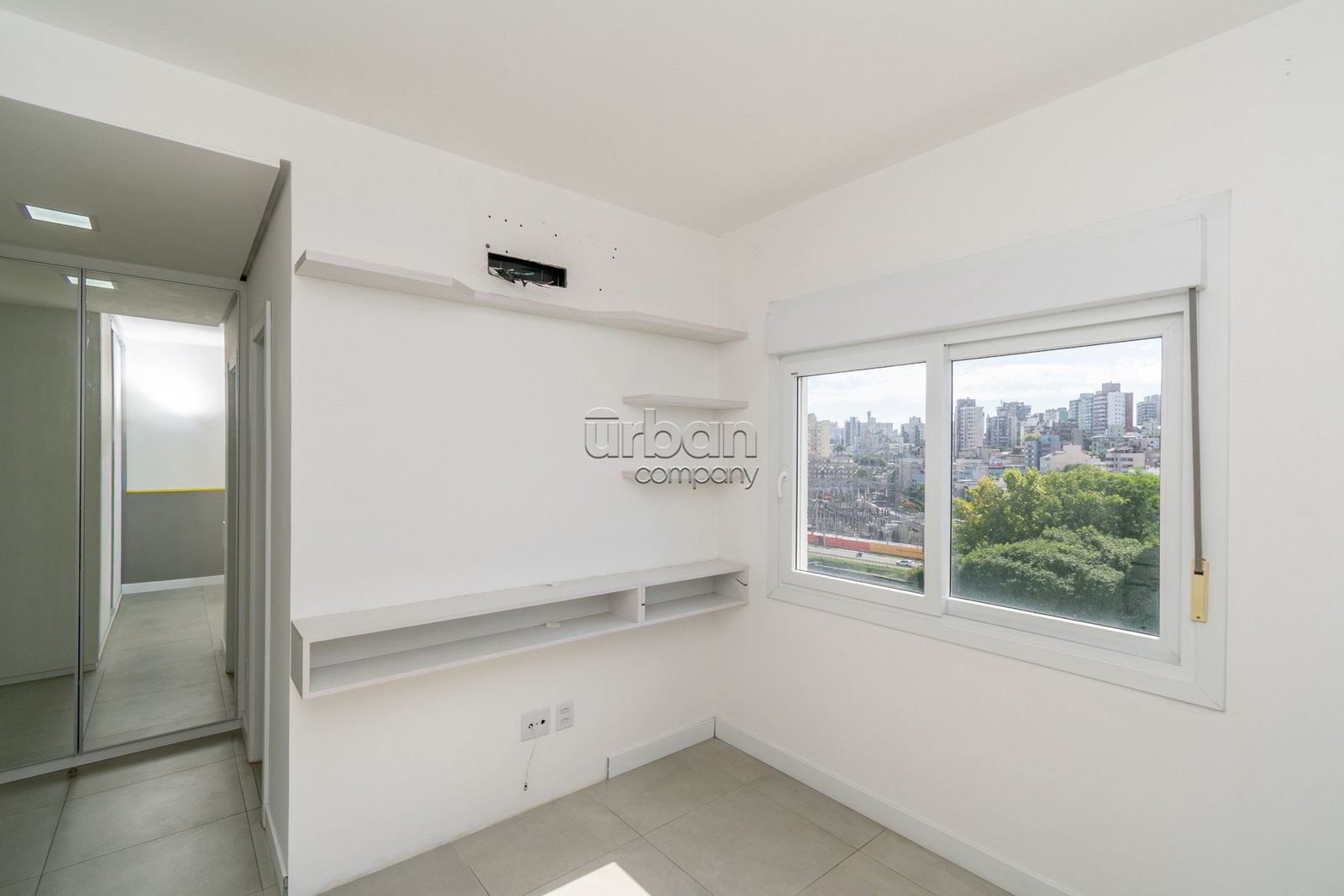 O dormitório também possui móveis planejados, garantindo ótimo aproveitamento de espaço e organização.