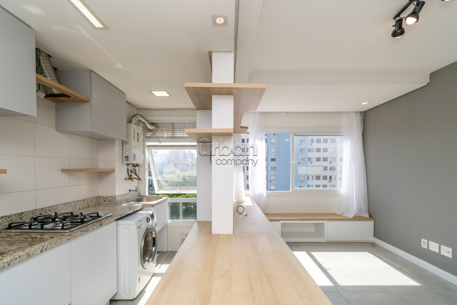 O living possui dois ambientes bem distribuídos, proporcionando um espaço aconchegante para estar e jantar. A cozinha planejada conta com móveis sob medida e está equipada com cooktop, máquina de lavar e secar e aquecedor, oferecendo funcionalidade no dia a dia.