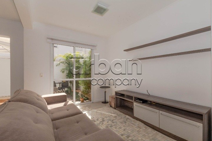 No pavimento inferior, living 2 ambientes com sala de estar e jantar, lavabo, área de serviço.