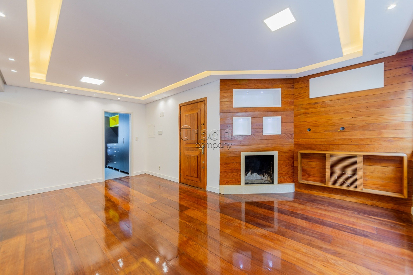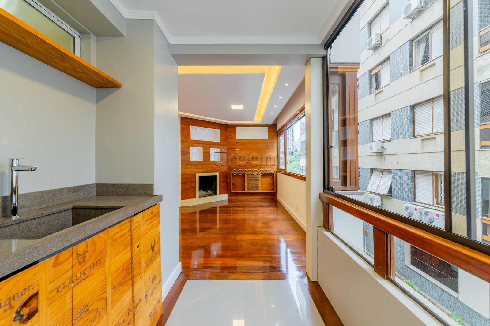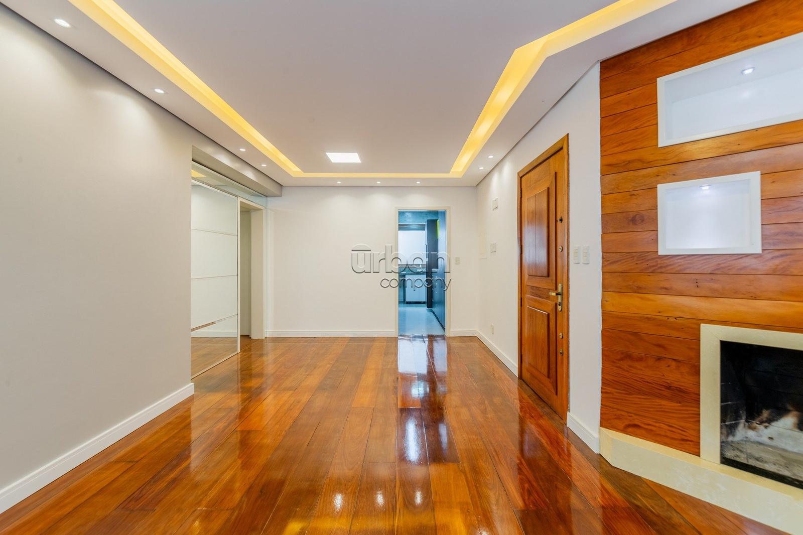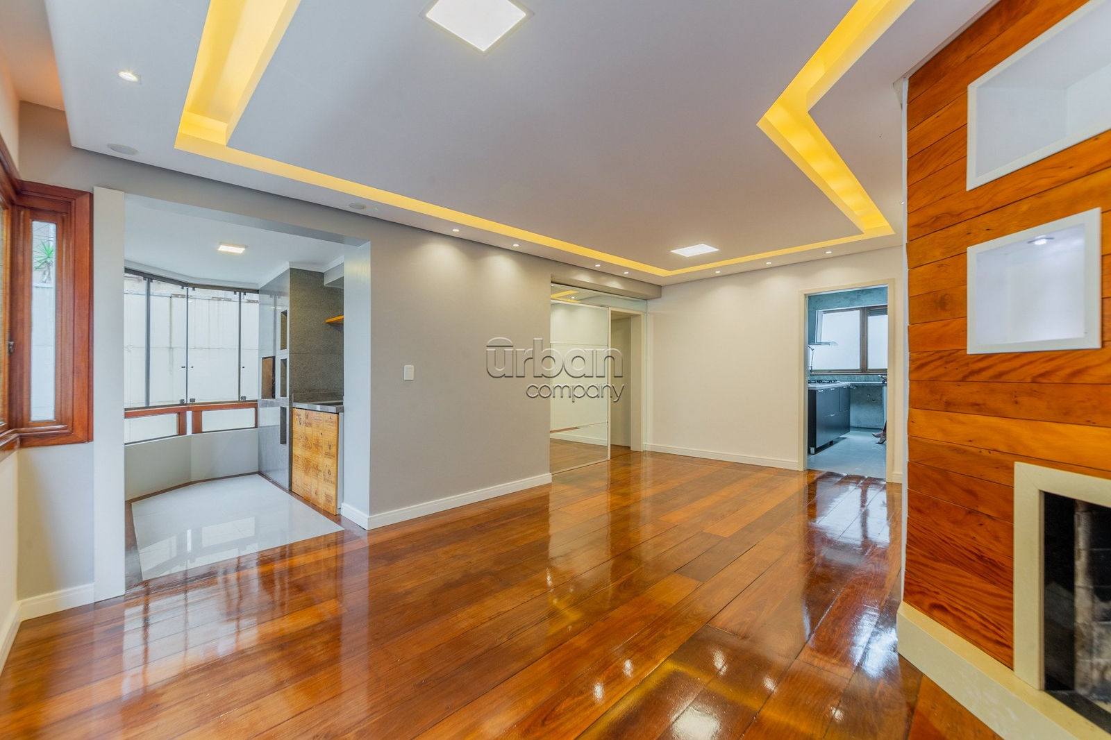 A área social conta com living espaçoso, piso em madeira natural, lareira e churrasqueira, criando um ambiente acolhedor e funcional para o dia a dia e para receber convidados, além de painel planejado para TV. Na área íntima, dispõe de suíte com closet sob medida, segundo dormitório e banheiro social com acabamento em travertino romano e metais instalados.