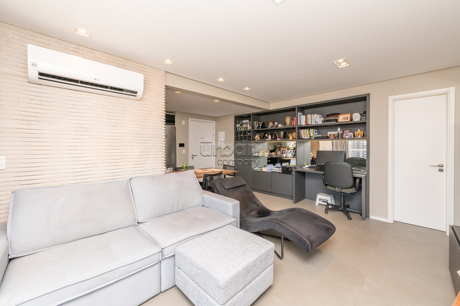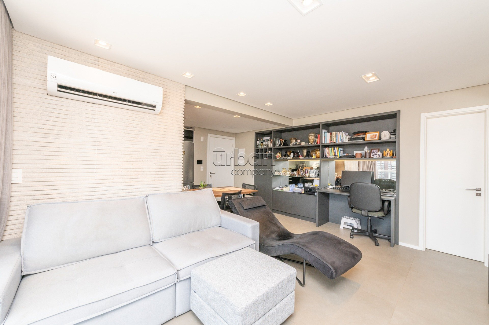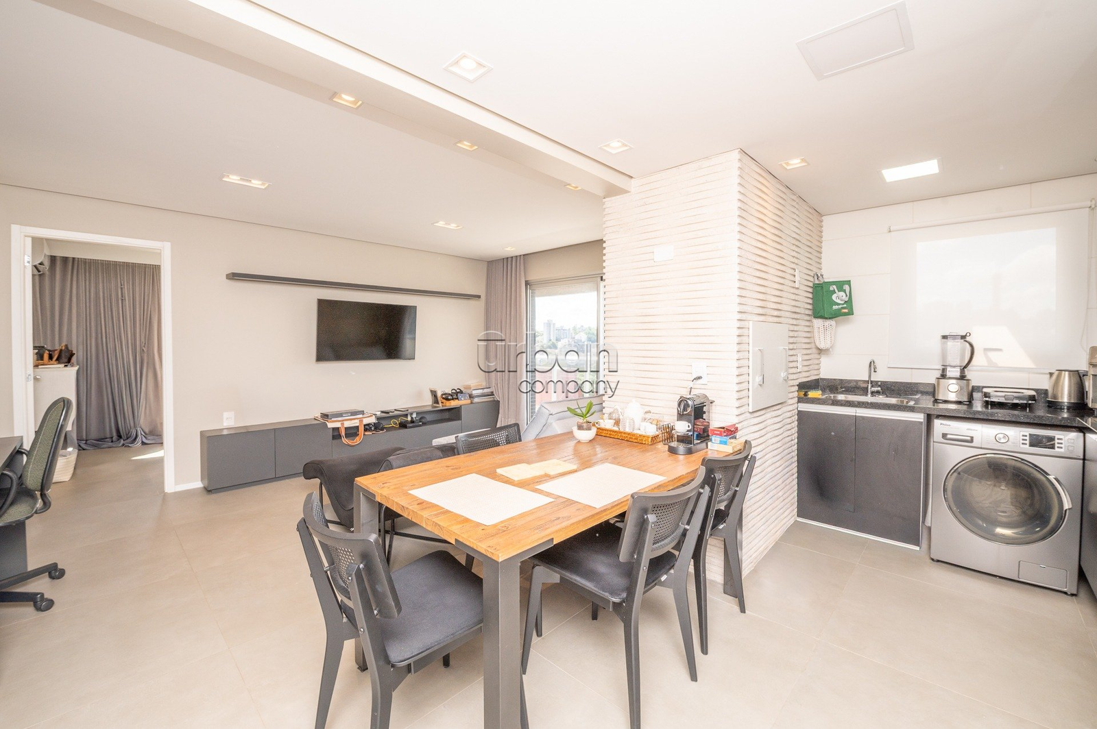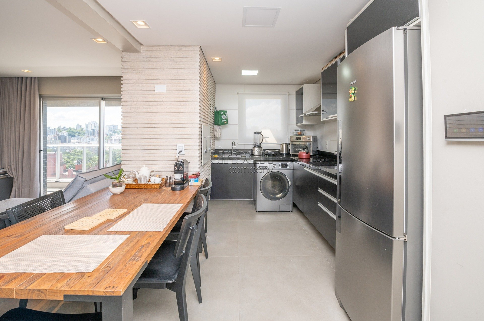 O imóvel possui na área social um amplo living com cozinha planejada integrada, churrasqueira, lavabo, móvel planejado para home office e sacada com uma vista fantástica.