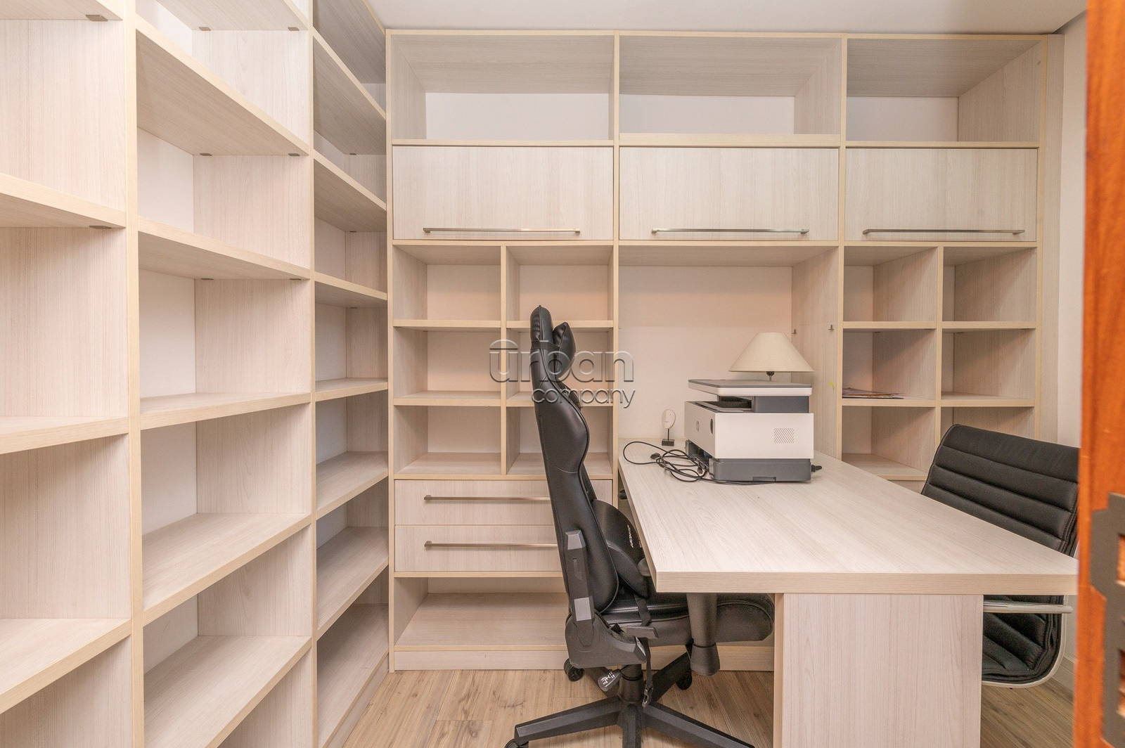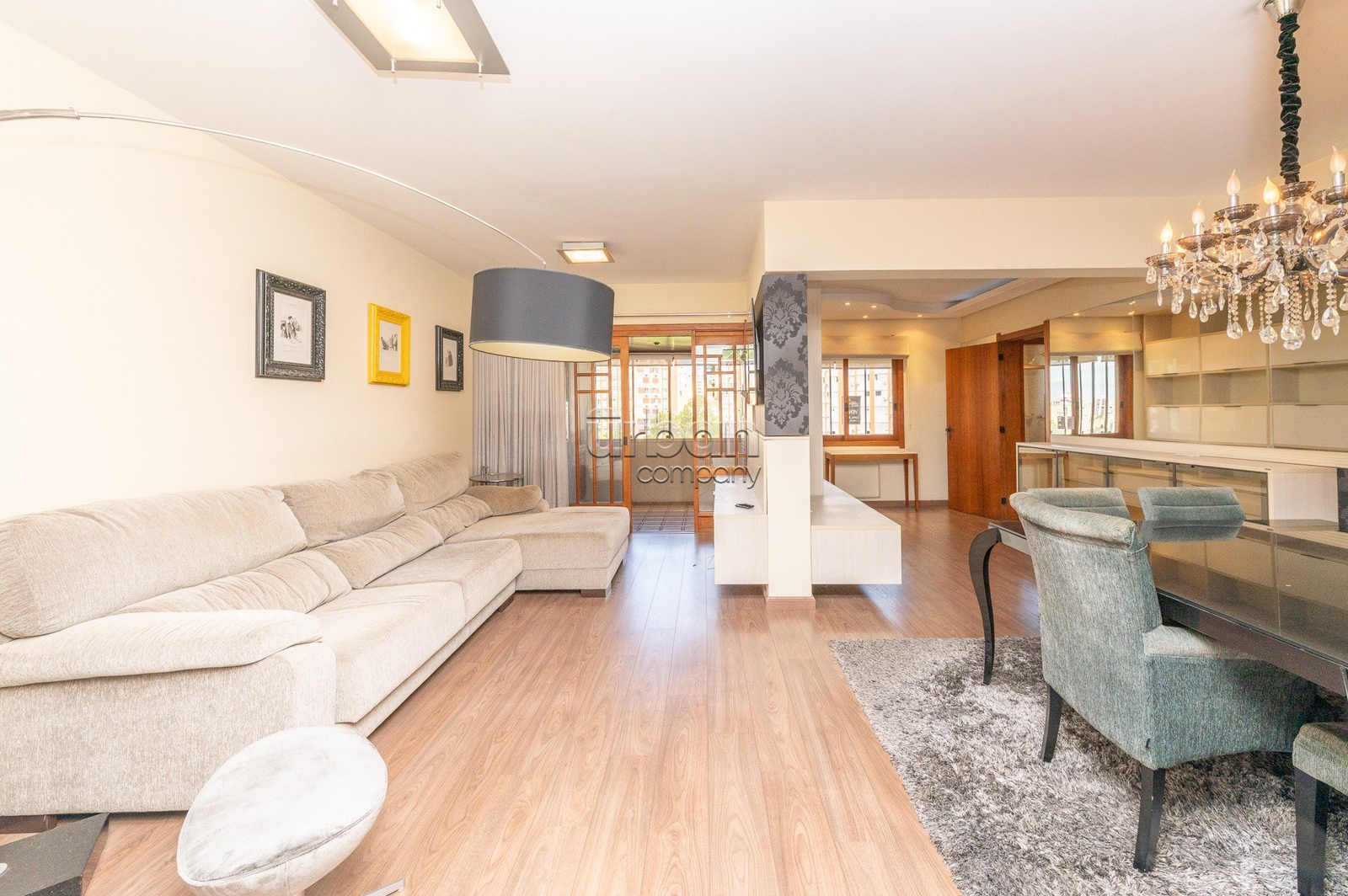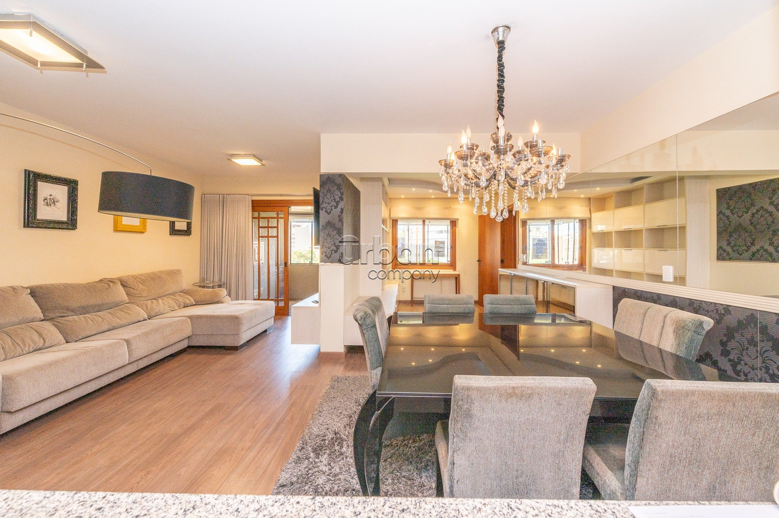O imóvel possui living três ambientes, sacada integrada, churrasqueira, lareira, janelas piso e teto trazendo uma excelente iluminação natural, vista definida e livre. Com espaço home office, sala de estar, jantar, cozinha americana, e área de serviço separada.