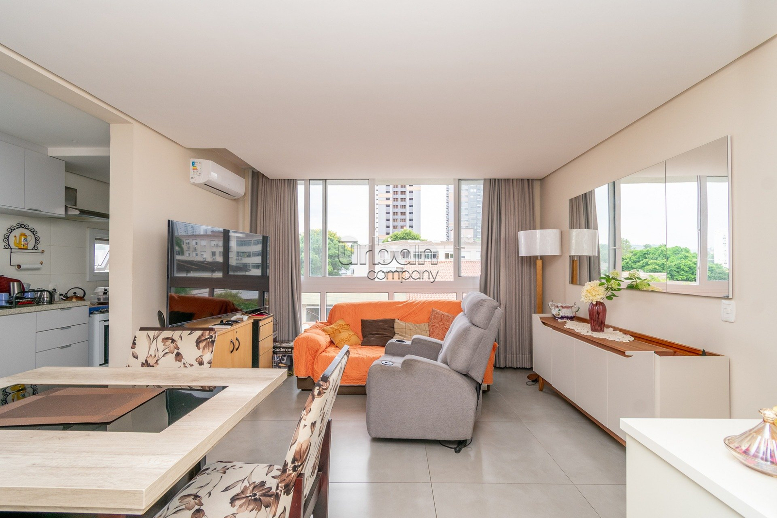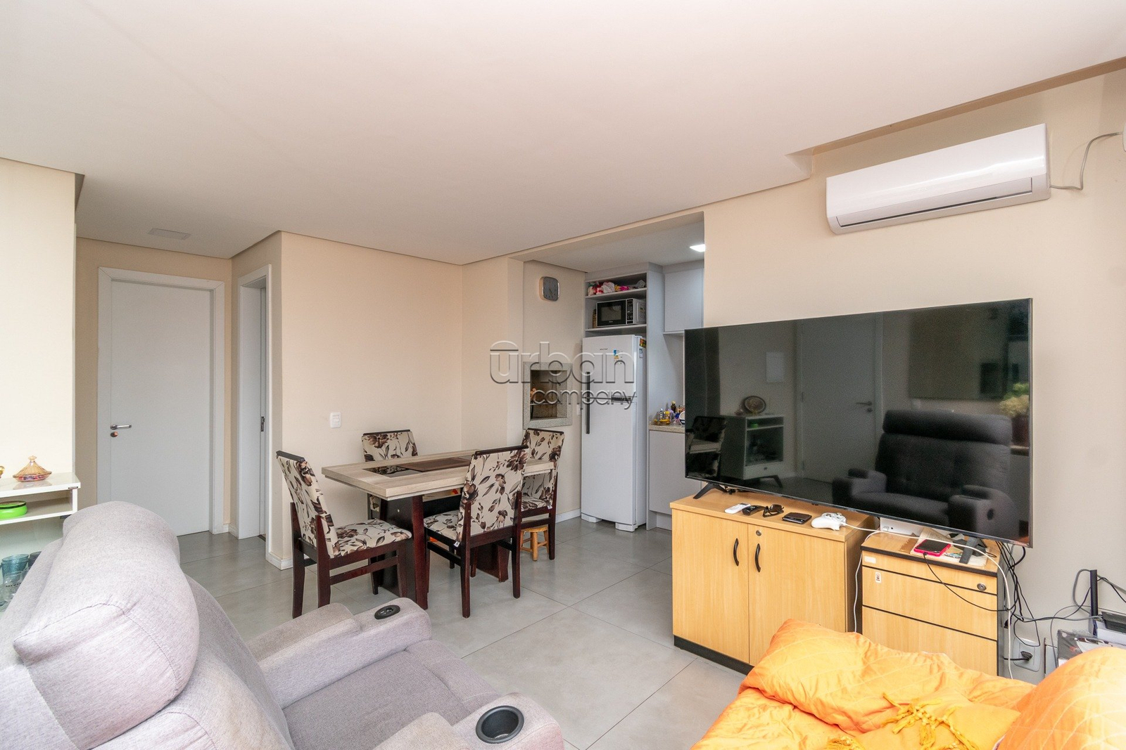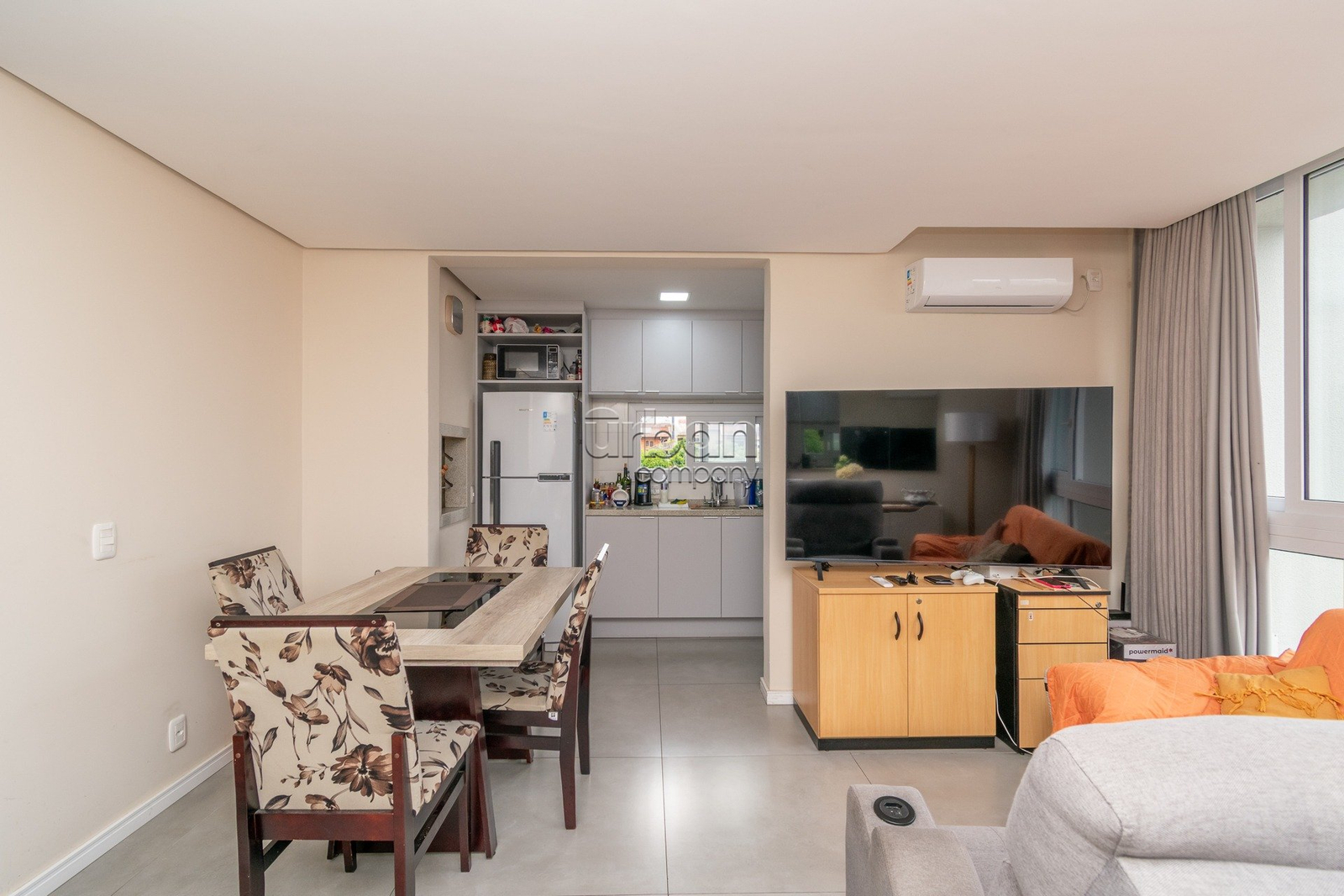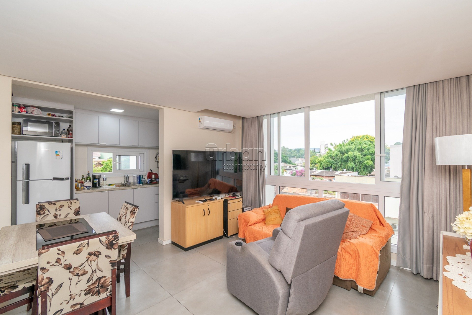 Apartamento novo, semi mobiliado com 63m² privativos, 2 dormitórios sendo 1 suíte com laminado, amplo living com porcelanato e janelões piso teto. cozinha americana com churrasqueira.