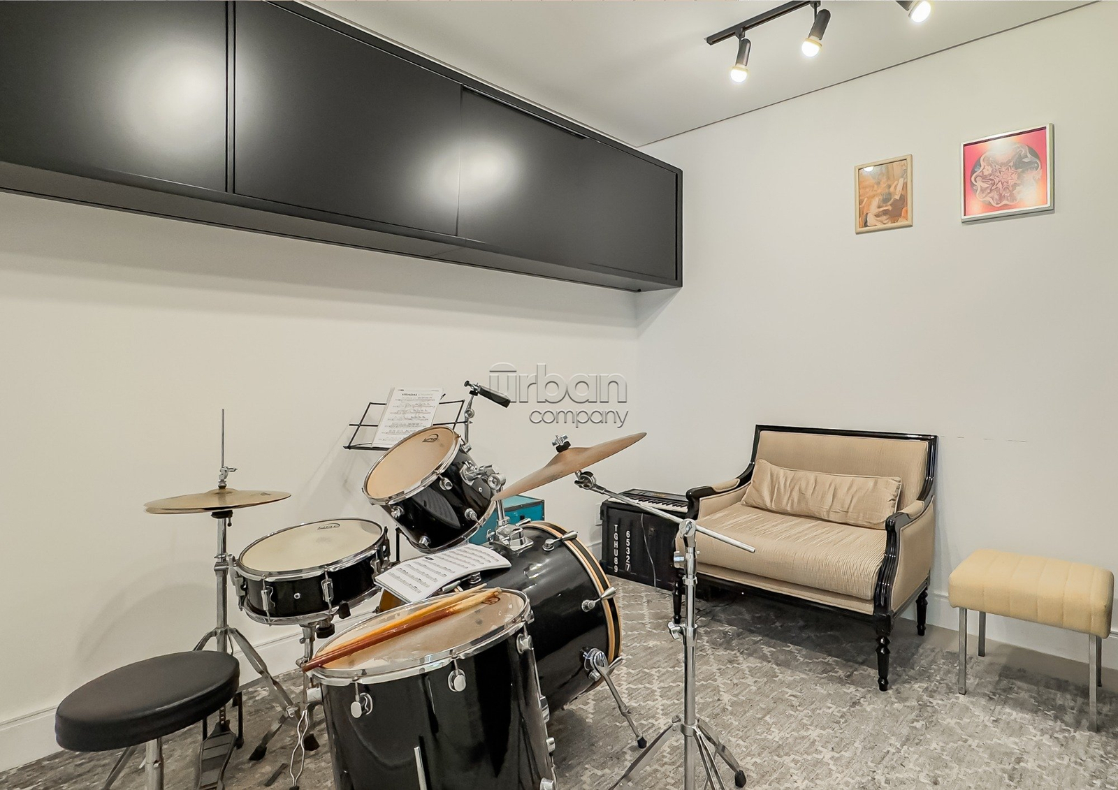 Na área externa, o pátio privativo conta com jacuzzi, espera para piscina e amplos espaços de convivência. O paisagismo, com irrigação automatizada, valoriza a integração com o entorno.