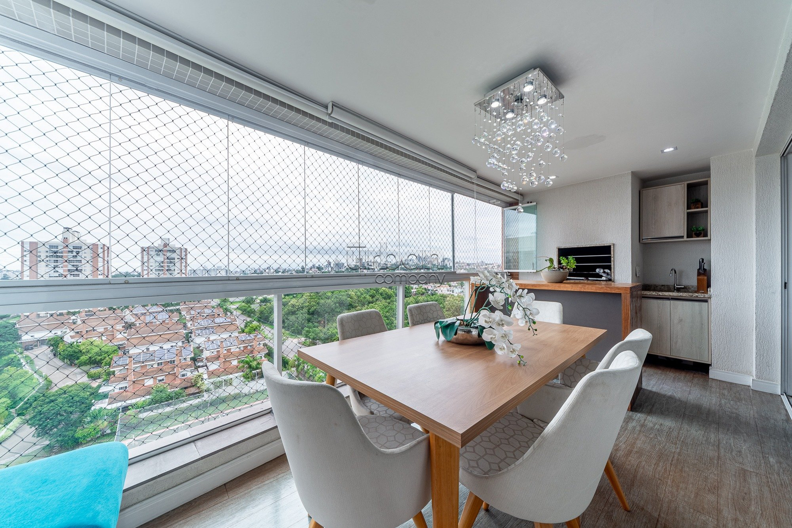 Imóvel com excelente distribuição e vista privilegiada para o pôr do sol. Living para três ambientes, integrado ao espaço gourmet com churrasqueira e lareira, além de gabinete e lavabo. A cozinha é ampla e bem iluminada, com área de serviço ventilada.