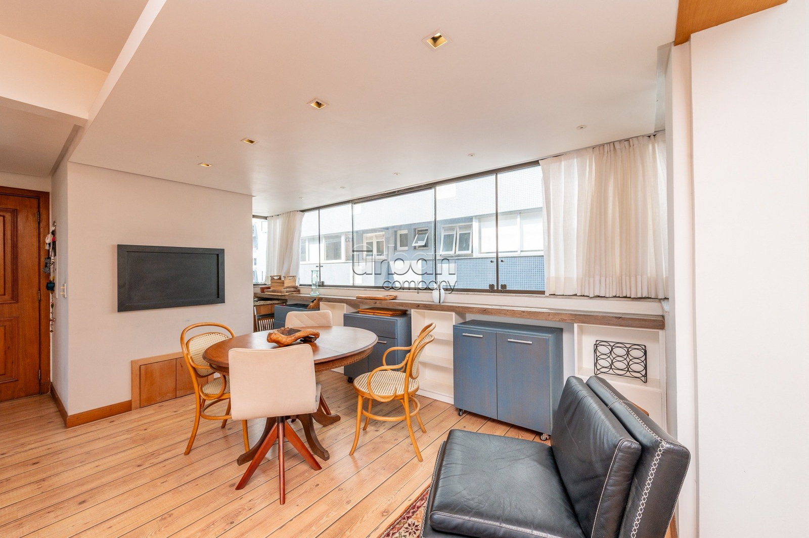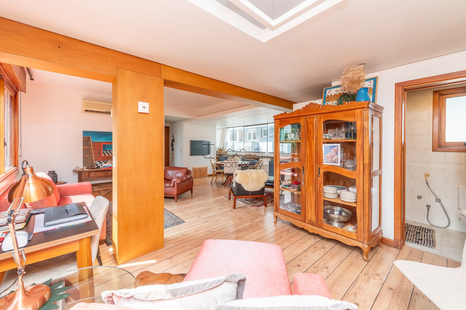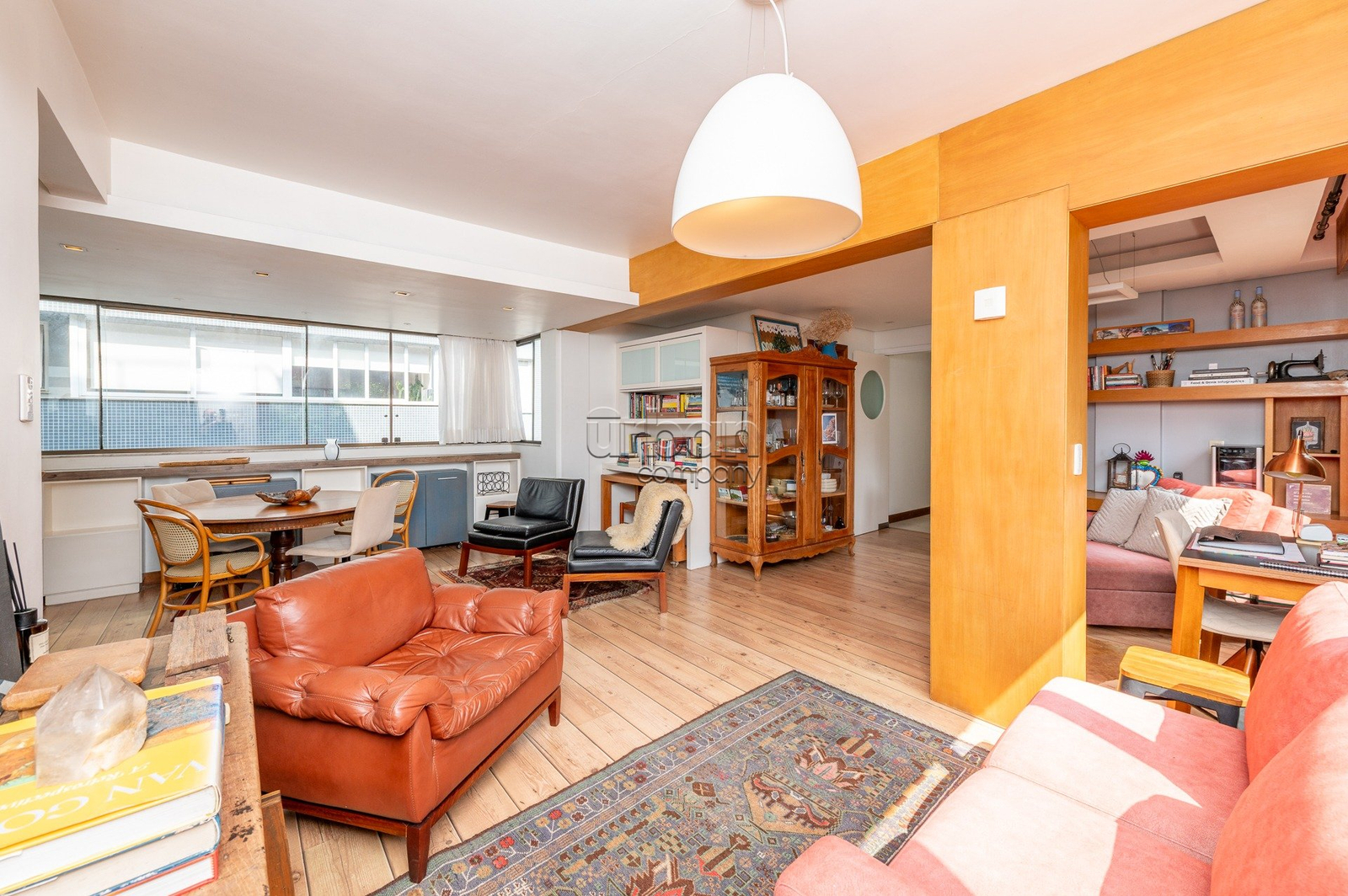 Apartamento com 97m² privativos, originalmente de 3 dormitórios e reformado para um amplo living com janelões, trazendo muita luz natural e conforto. Conta com 2 dormitórios, sendo 1 suíte, e outro dormitório transformado em closet, de fácil reversão.