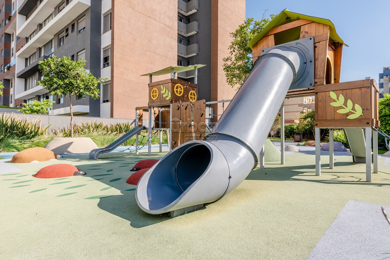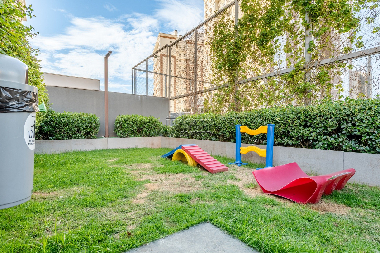 O empreendimento oferece infraestrutura completa, com salão de festas, espaço gourmet, brinquedoteca, playground, piscinas externa e térmica, academia equipada, quadra poliesportiva e sistema de segurança com reconhecimento facial e portaria presencial 24 horas.