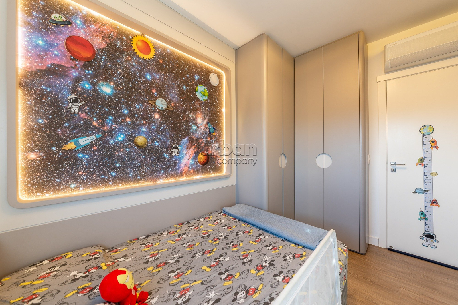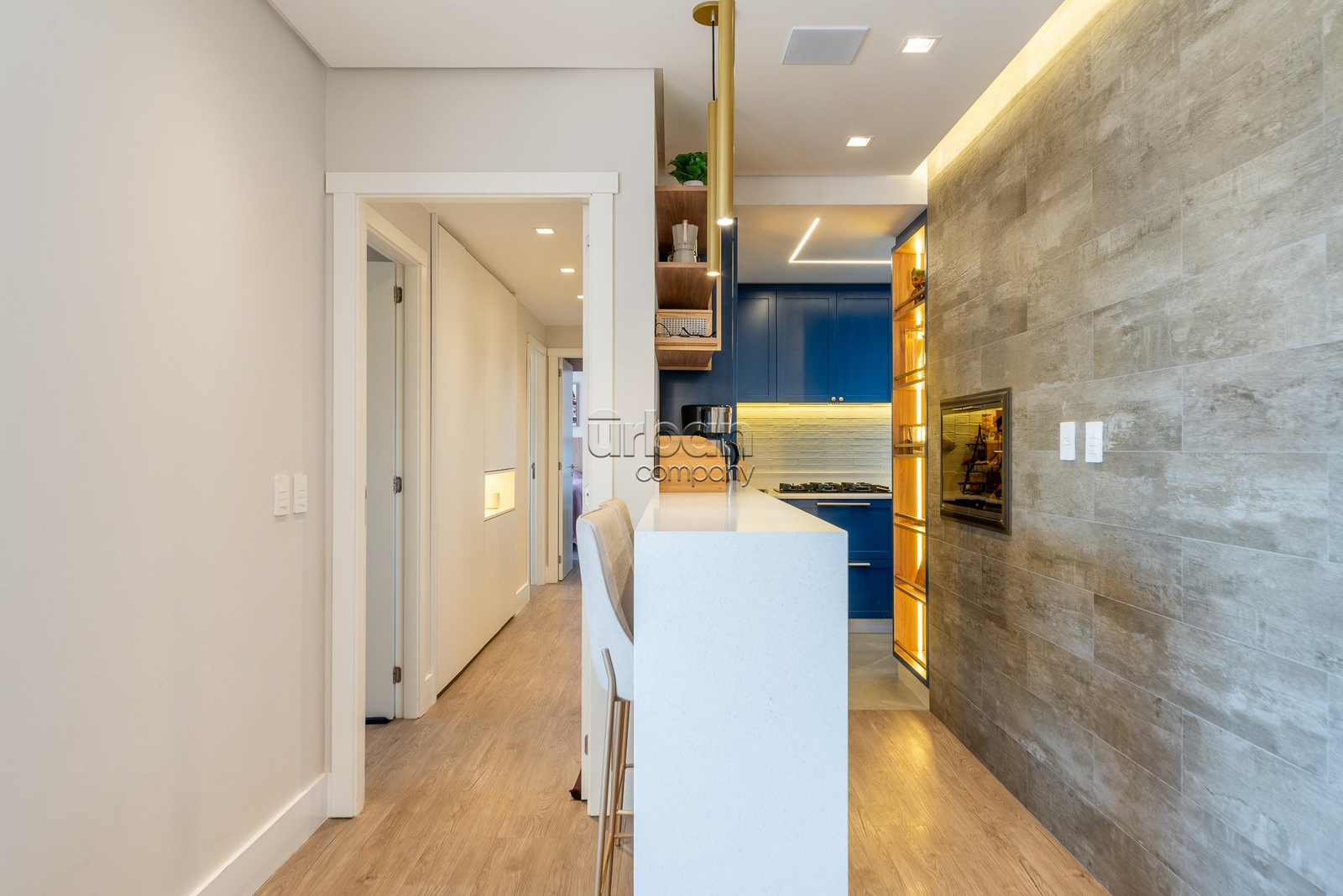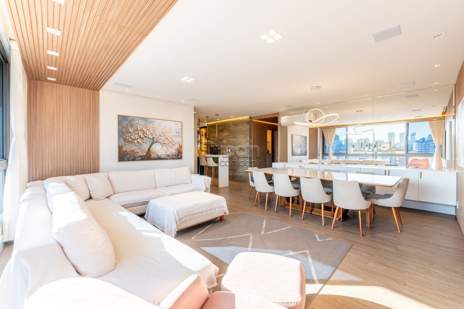 O imóvel possui projeto assinado por arquiteto, com mobiliário de alto padrão e excelente aproveitamento dos espaços. O living é amplo, com dois ambientes bem definidos, estar e jantar, lareira e aberturas do piso ao teto que garantem ótima iluminação natural. A integração com a cozinha e o espaço gourmet com churrasqueira traz praticidade e sofisticação ao ambiente.