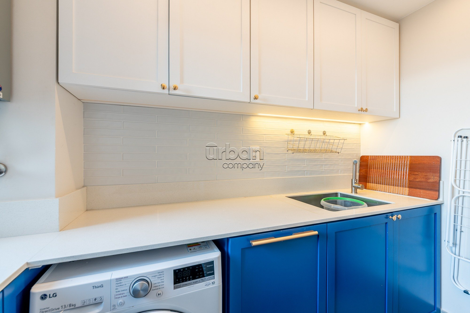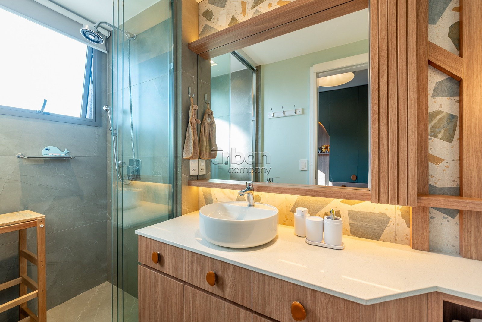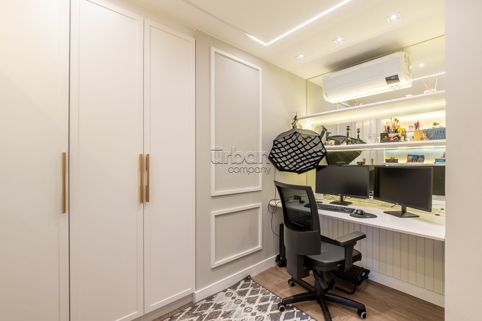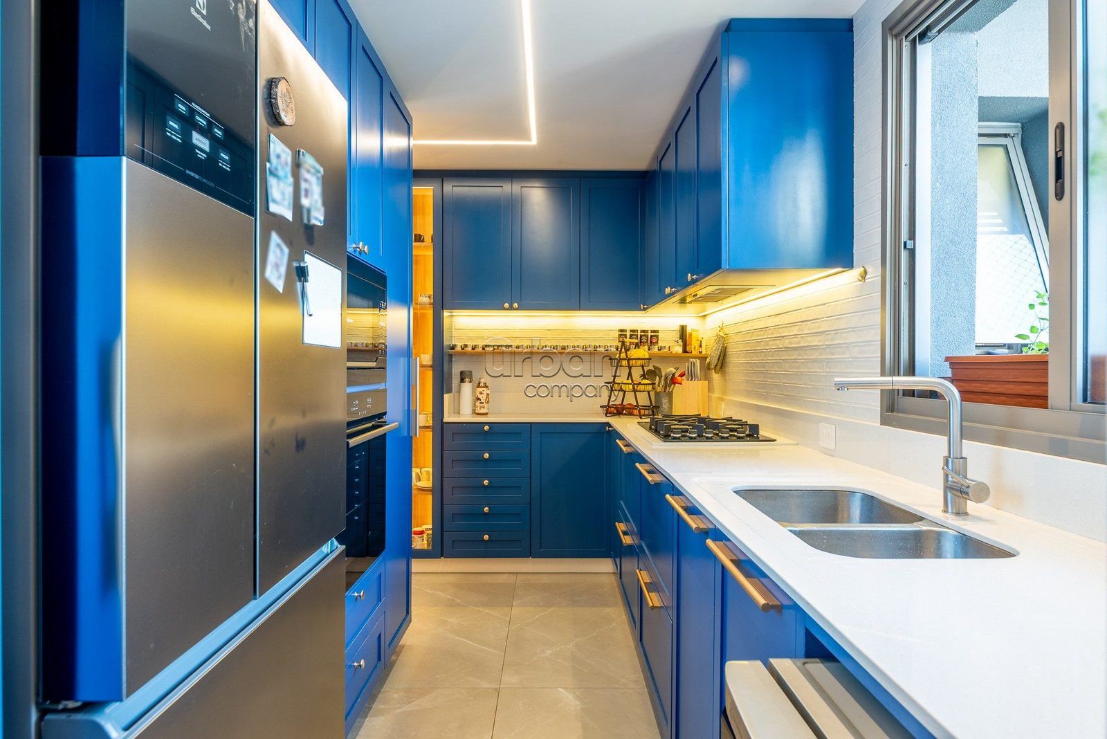 O imóvel possui projeto assinado por arquiteto, com mobiliário de alto padrão e excelente aproveitamento dos espaços. O living é amplo, com dois ambientes bem definidos, estar e jantar, lareira e aberturas do piso ao teto que garantem ótima iluminação natural. A integração com a cozinha e o espaço gourmet com churrasqueira traz praticidade e sofisticação ao ambiente.