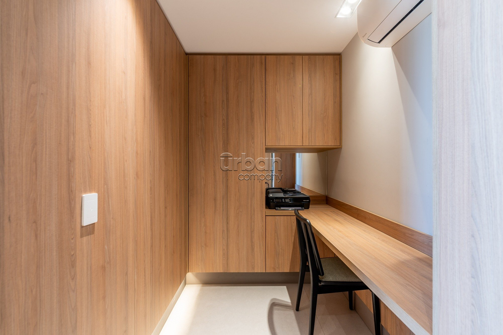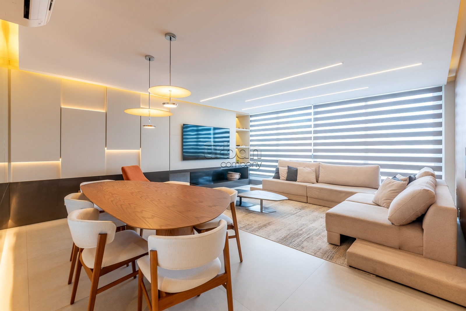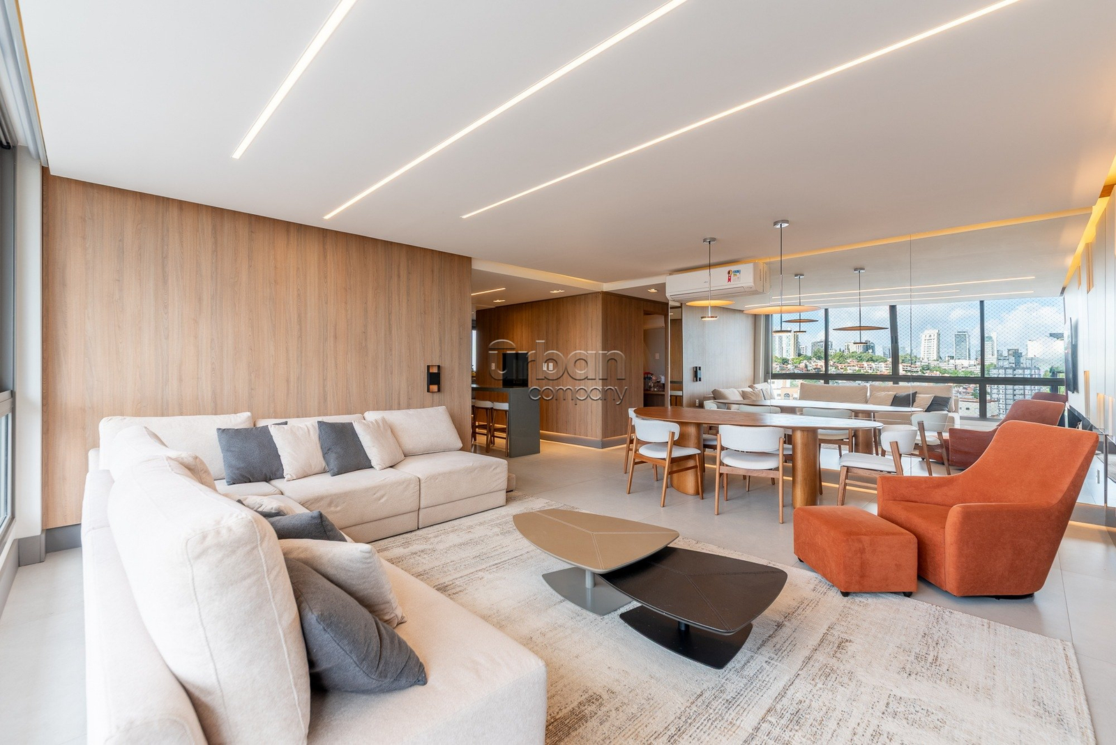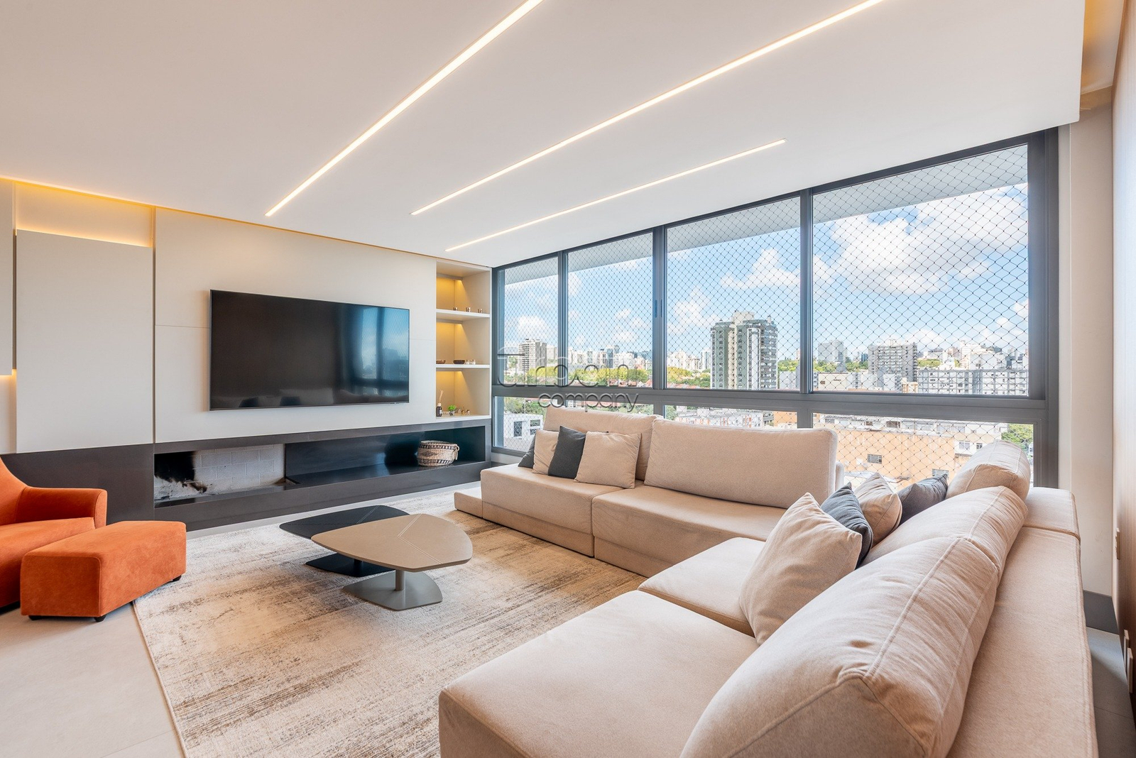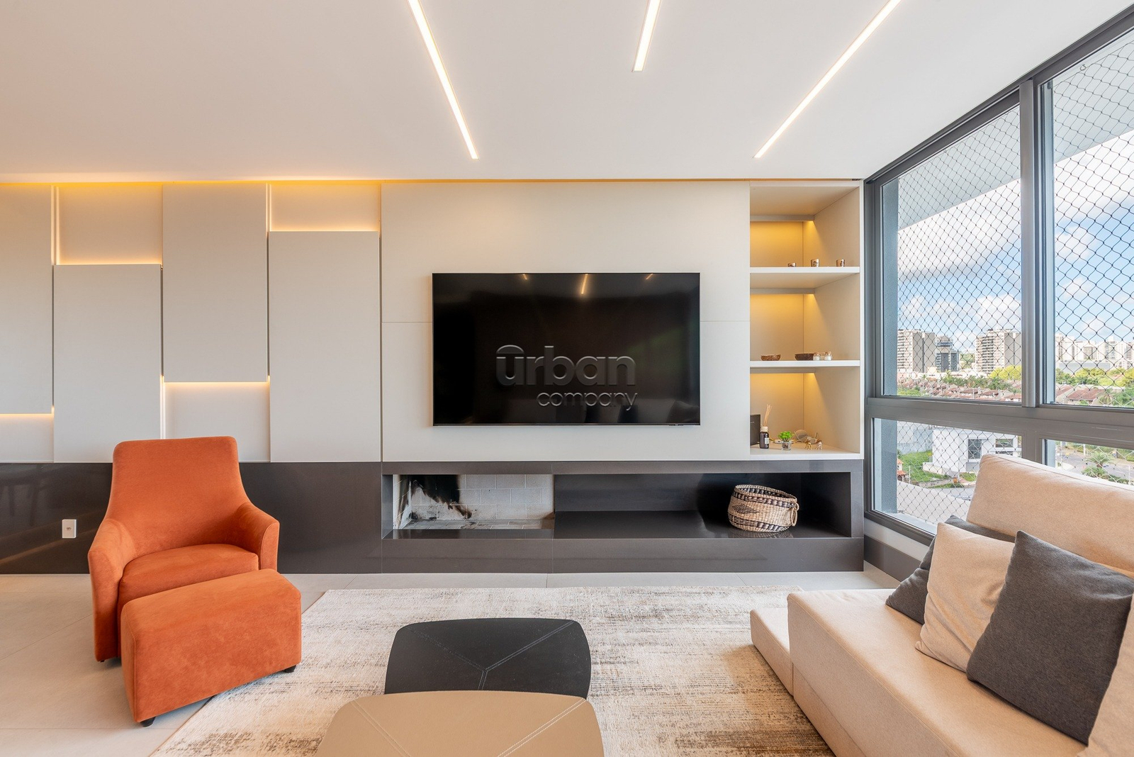 Imóvel em andar alto com vista definida, amplas esquadrias que proporcionam luminosidade natural, living de 3 ambientes espaço estar com lareira convencional, lavabo, espaço jantar com mobília fixa sob medida de apoio, espaço churrasco com parrilla e home office. Totalmente mobiliado e finamente decorado, o imóvel apresenta um projeto de interiores sofisticado, que alia elegância, conforto e funcionalidade em todos os ambientes. São três suítes amplas sendo uma das suíte adaptado em closet de fácil reversão.