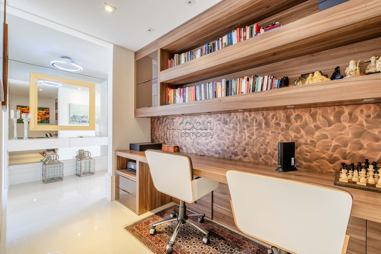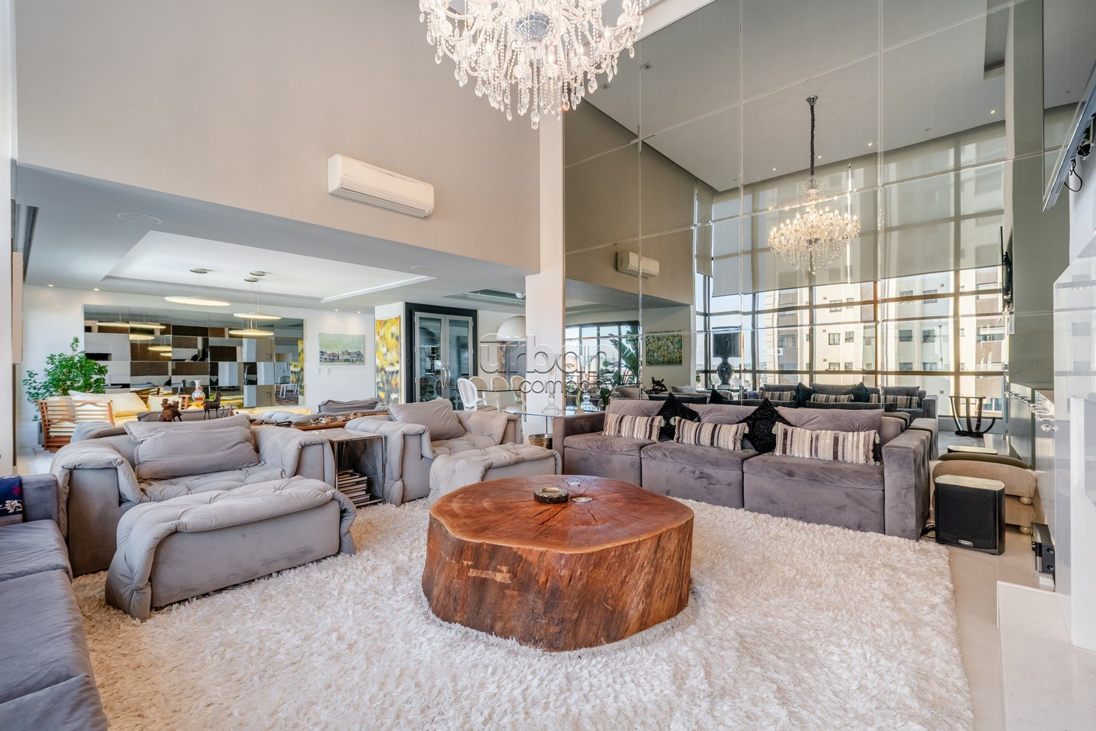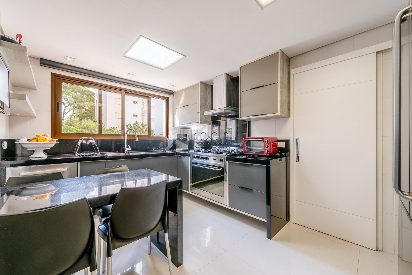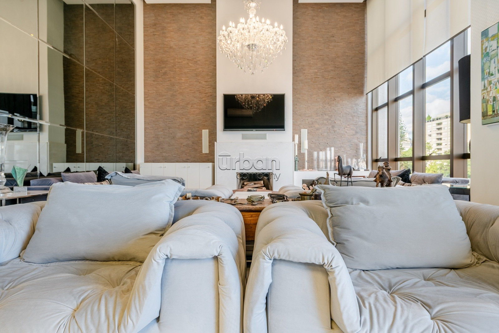 O imóvel dispõe de acesso privativo, 3 suítes, incluindo uma suíte principal com banheira integrada ao ambiente, dois closets e espaço para home office. Conta ainda com lavabo, lareira e área gourmet com churrasqueira, além de adega climatizada, cozinha planejada, lavanderia, dependência completa de serviço e depósito. São 4 vagas de garagem, sendo duas individuais e uma dupla.