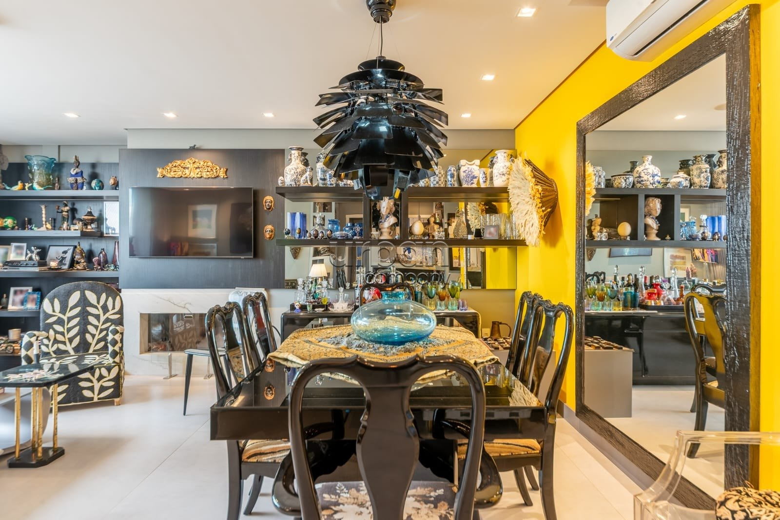 O living integrado foi cuidadosamente projetado para oferecer dois ambientes acolhedores, com sala de estar e jantar. A sala de estar é equipada com uma lareira a álcool, criando um ambiente aconchegante, enquanto as janelas do piso ao teto garantem excelente iluminação natural.