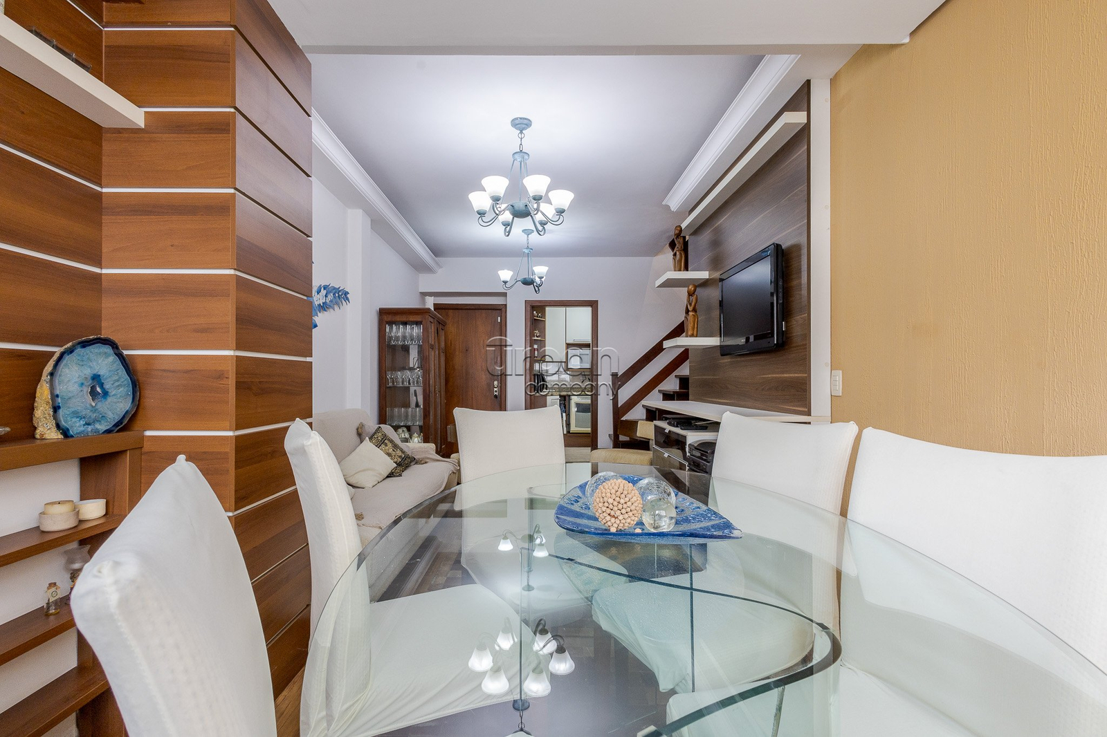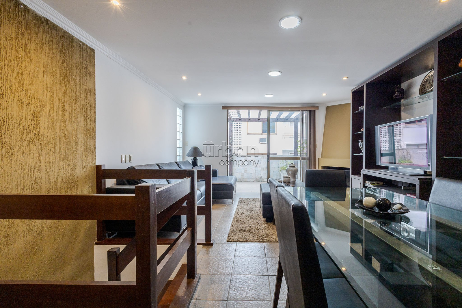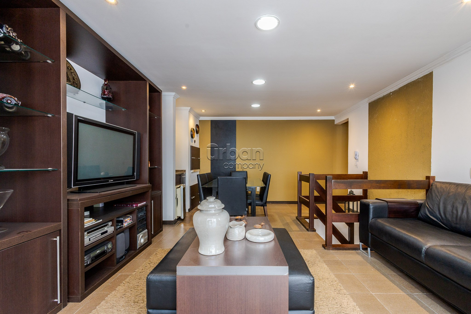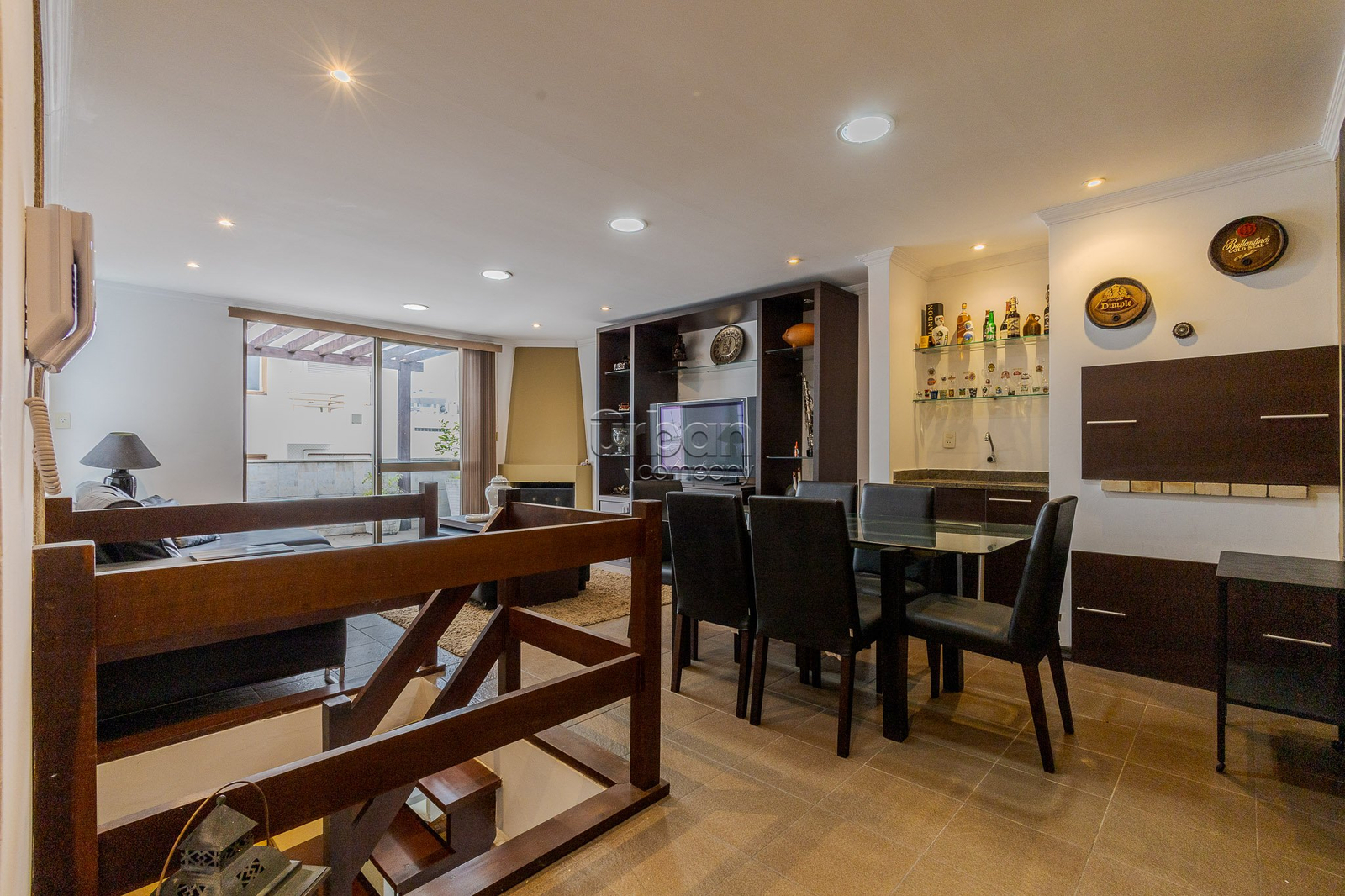 No piso superior, um amplo living com lareira e churrasqueira, suíte, lavabo e terraço. 1 vaga de garagem.