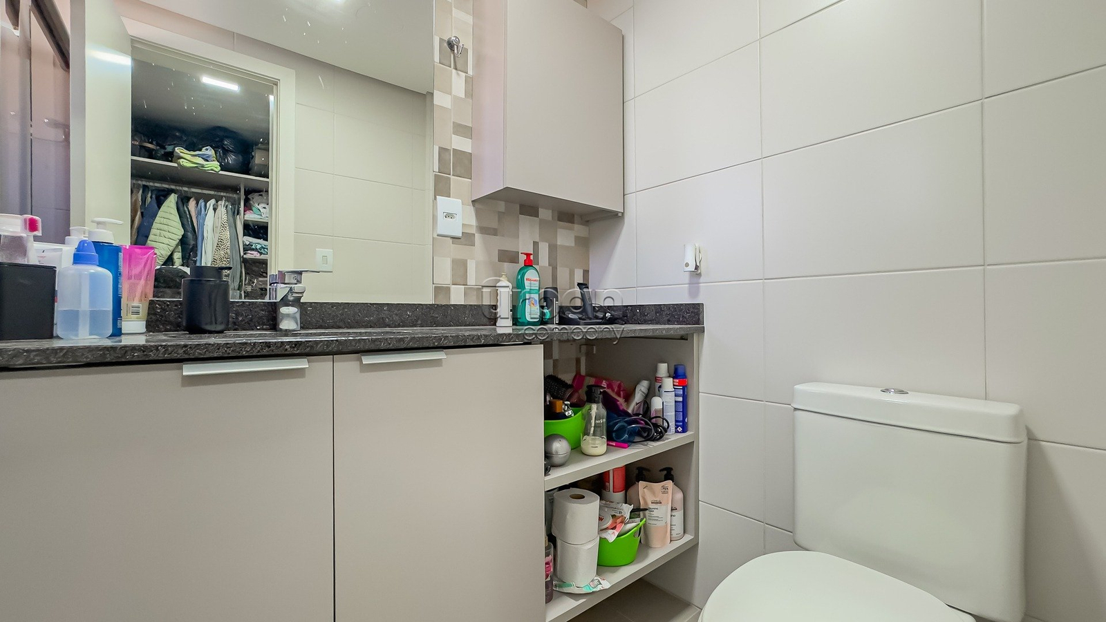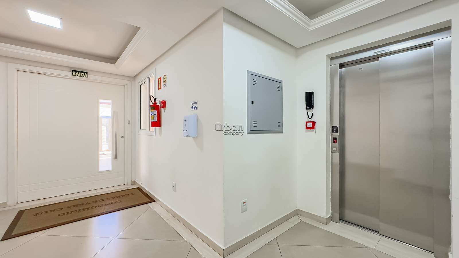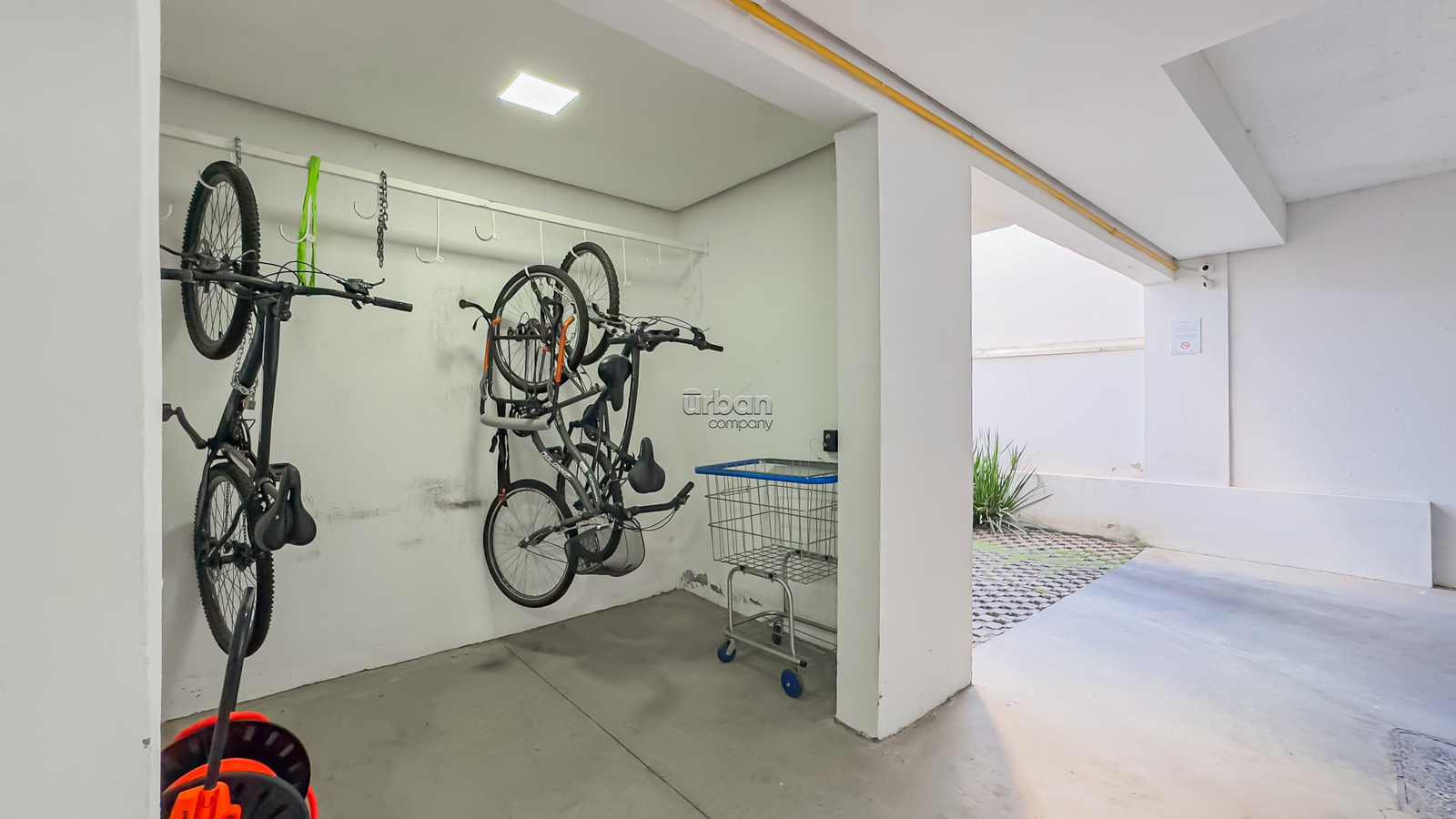 Condomínio com elevador, salão de festas, churrasqueira, bicicletário e espaço fitness.