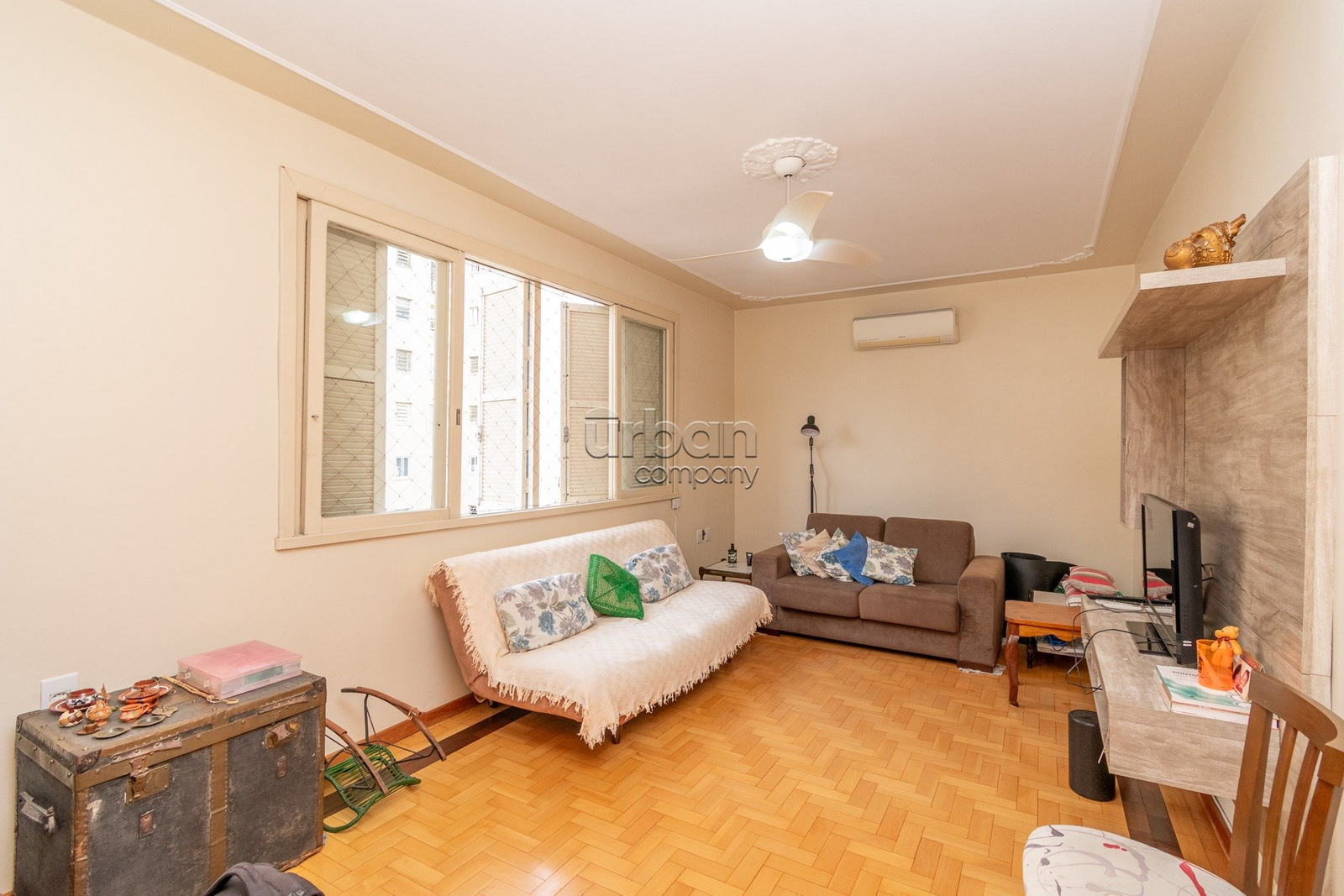 O imóvel conta com um espaçoso living para dois ambientes, piso em parquet, área de circulação bem distribuída, cozinha funcional, dependência de empregada, área de serviço separada, dois banheiros completos e despensa. A unidade possui vista definida, garantindo mais privacidade e luminosidade natural.