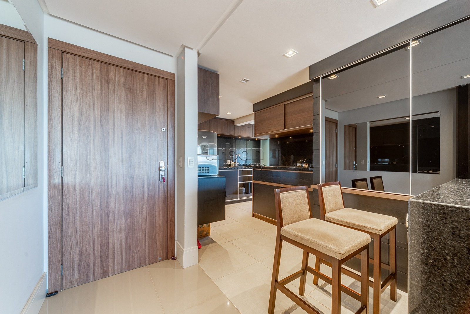 O imóvel conta com 2 suítes, living para dois ambientes, lavabo e cozinha americana com churrasqueira. A área de serviço é separada, trazendo mais praticidade ao dia a dia.
