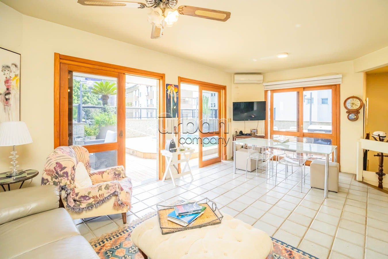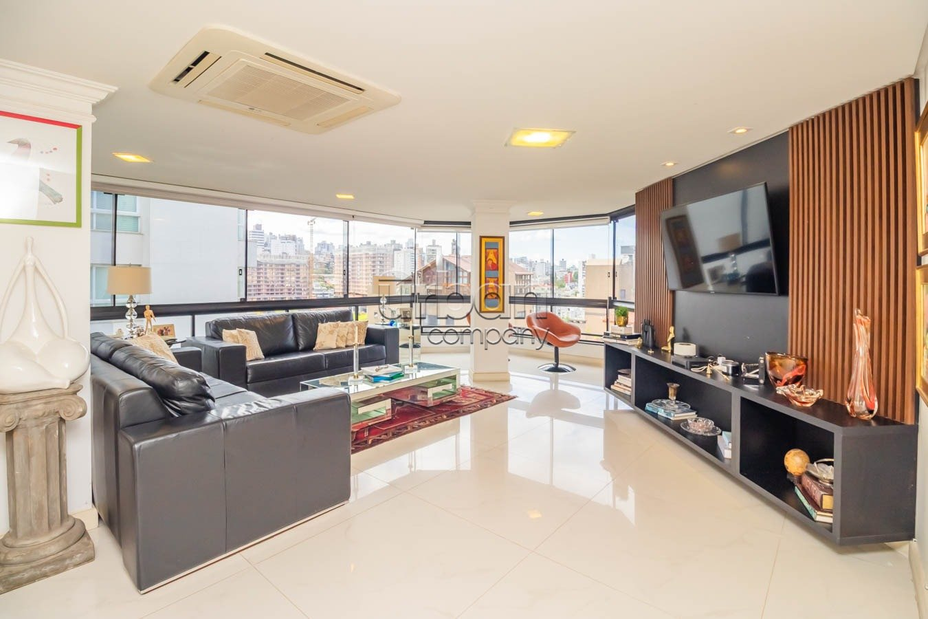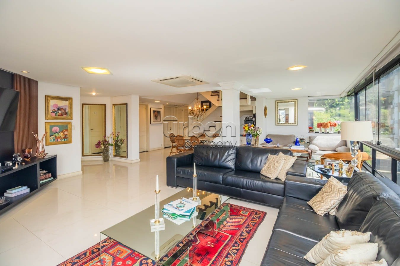 O living espaçoso acomoda até quatro ambientes, com piso em tabuão e lareira aconchegante. A sacada com churrasqueira é perfeita para momentos de lazer. A cozinha está totalmente montada, com copa integrada, além de área de serviço separada e dependência de empregada com banheiro auxiliar. As esquadrias em madeira natural conferem elegância e sofisticação.