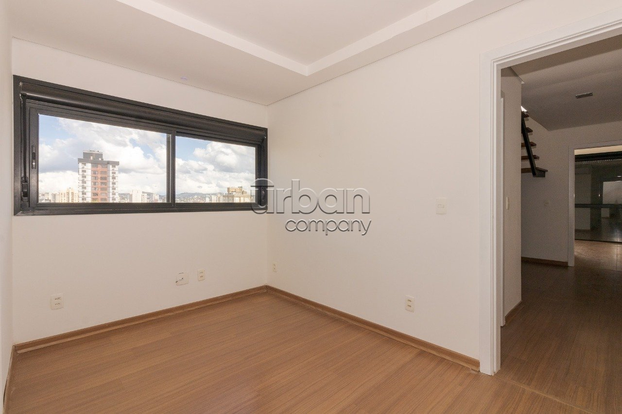 Aqui está aquele imóvel para quem procura algo diferenciado e exclusivo, um duplex com 87m² de área privativa, 2 dormitórios sendo 1 suíte, living dois ambientes com vista panorâmica, cozinha integrada com churrasqueira, área de serviço e banheiro social. Ótima infra com piscina e salão de festas. Próximo as principais avenidas da região, fácil acesso ao aeroporto e junto a todo comércio que o bairro oferece!
