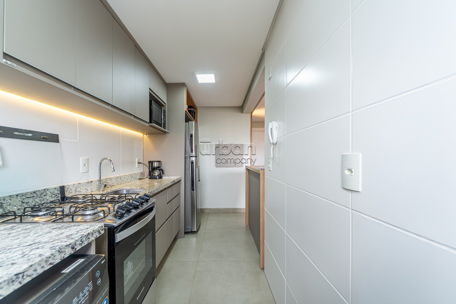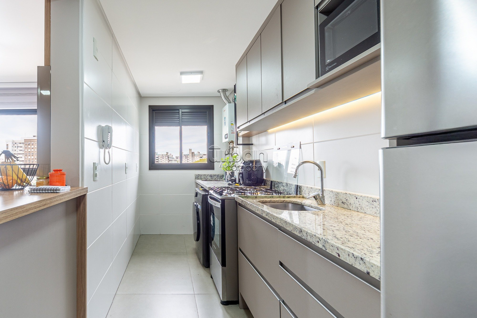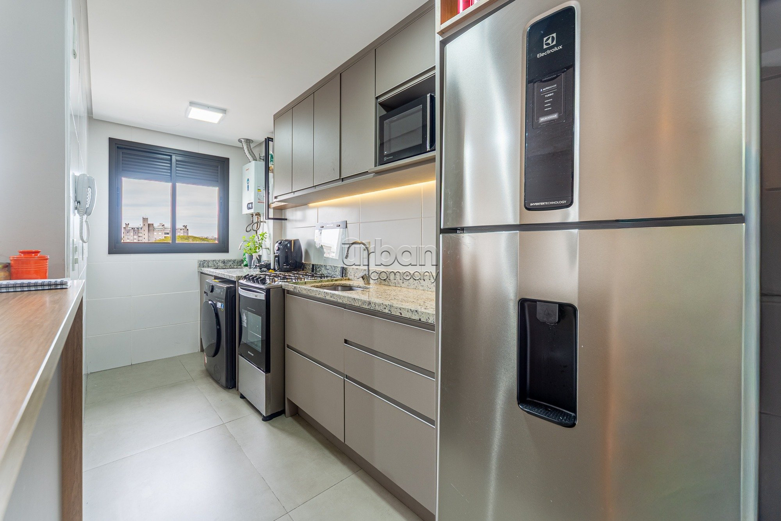 A cozinha é funcional e integrada à área de serviço, otimizando o espaço e facilitando o dia a dia. Além disso, o apartamento dispõe de uma vaga de garagem, garantindo comodidade e segurança.