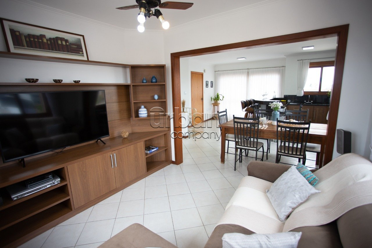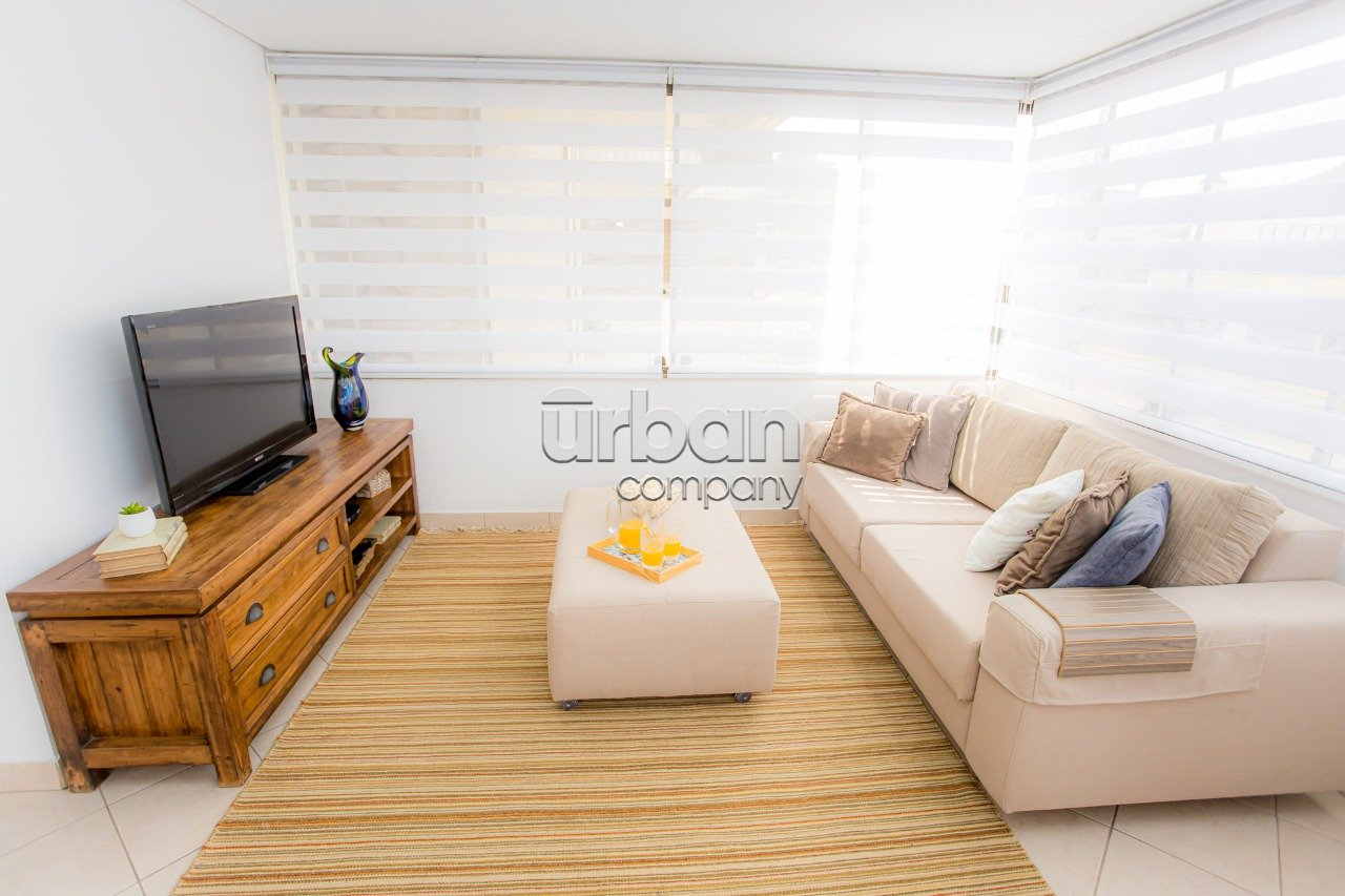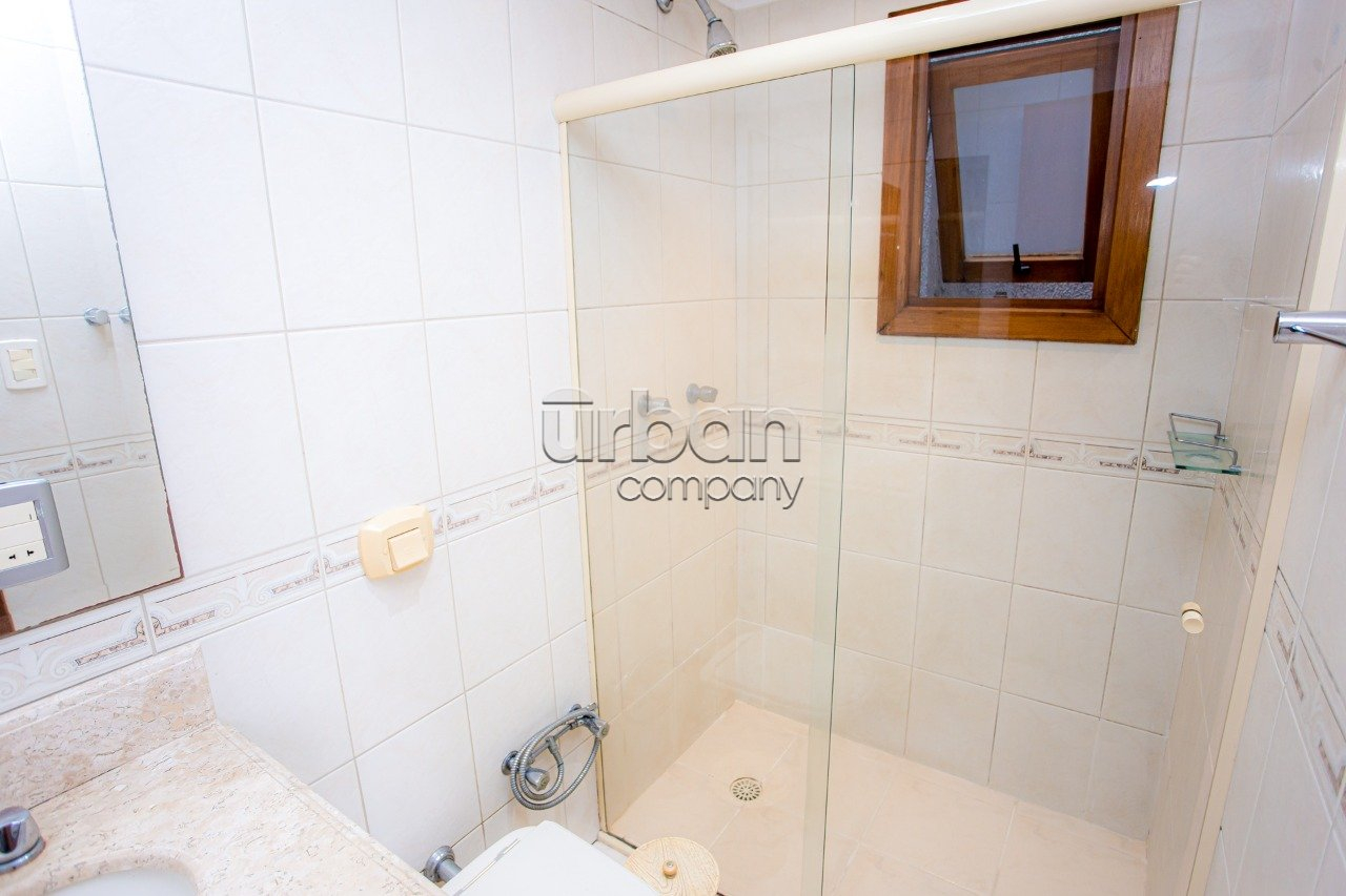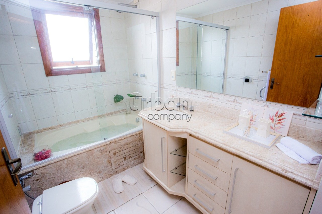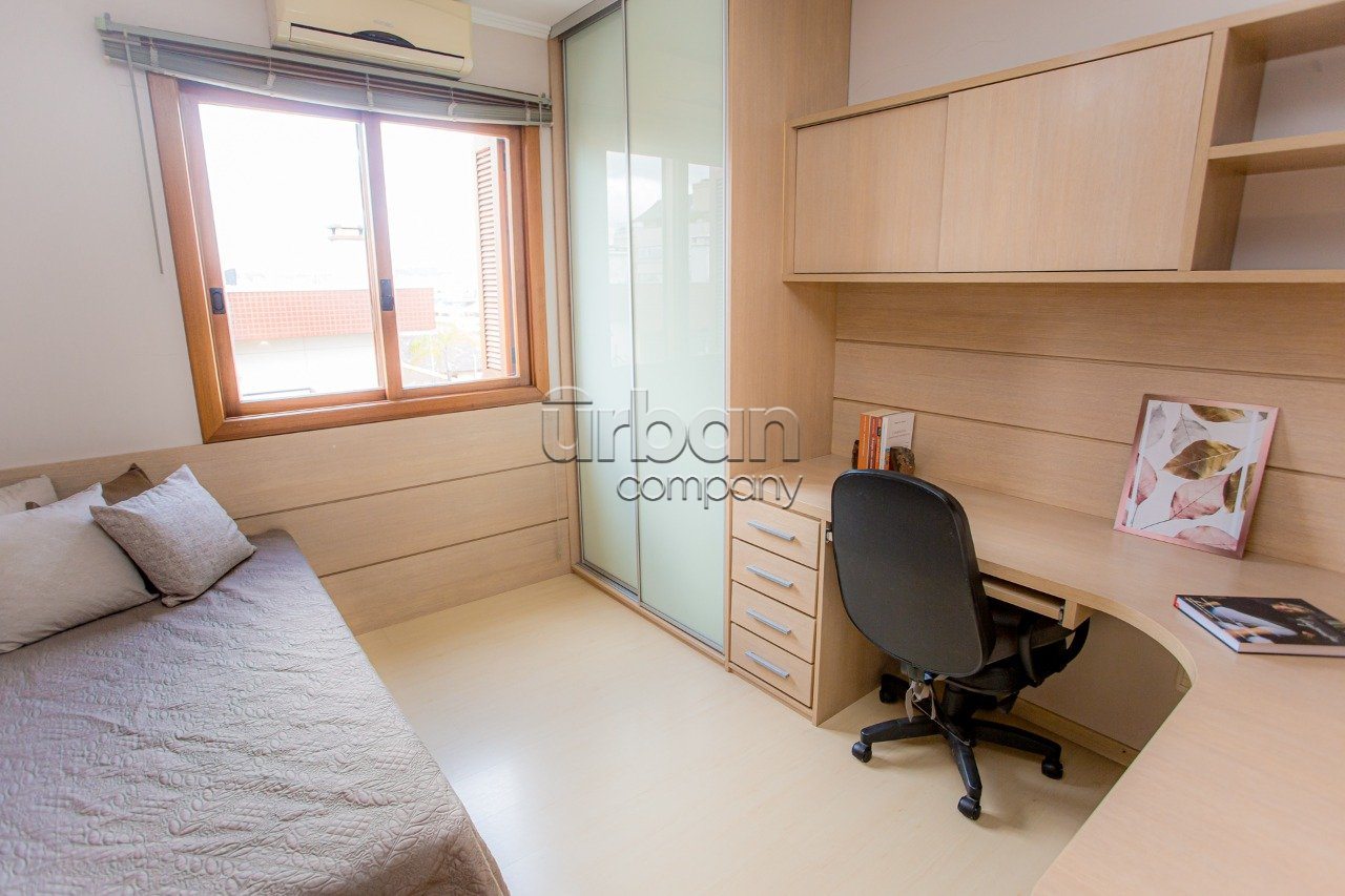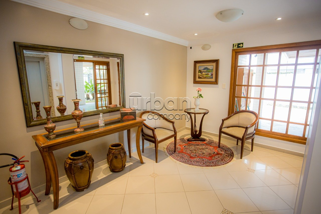 Cobertura toda reformada, possui 261m² privativos, 3 dormitórios sendo 1 suíte com hidro e sacada, living 5 ambientes, bar com balcão em mármore Travertino, escadas com degraus em granito. No segundo pavimento, salão de festas, sala de TV, banheiro completo e um ótimo espaço churrasco, duas áreas descobertas, sendo a maior de frente e a outra de fundos com deck e piscina.